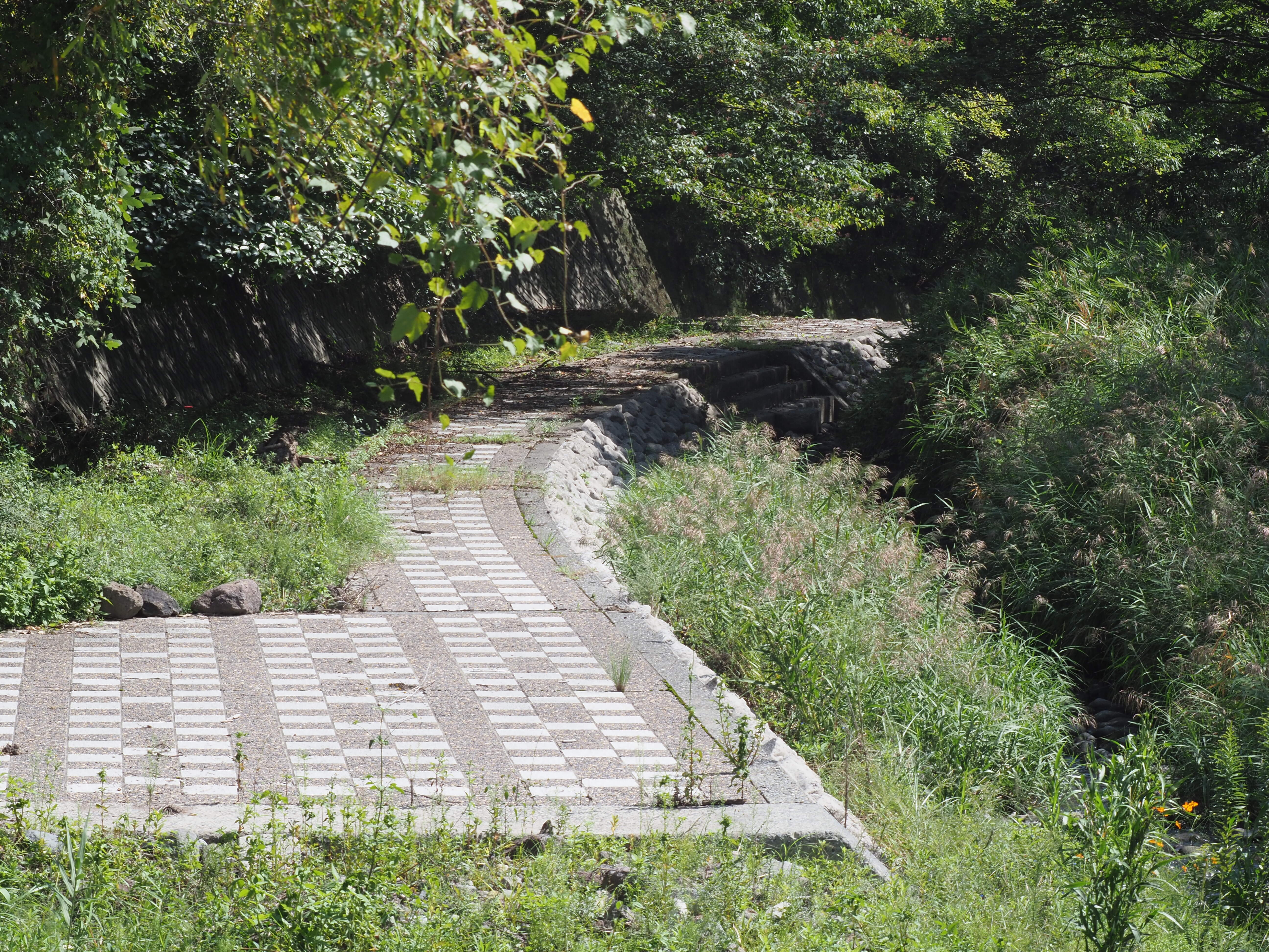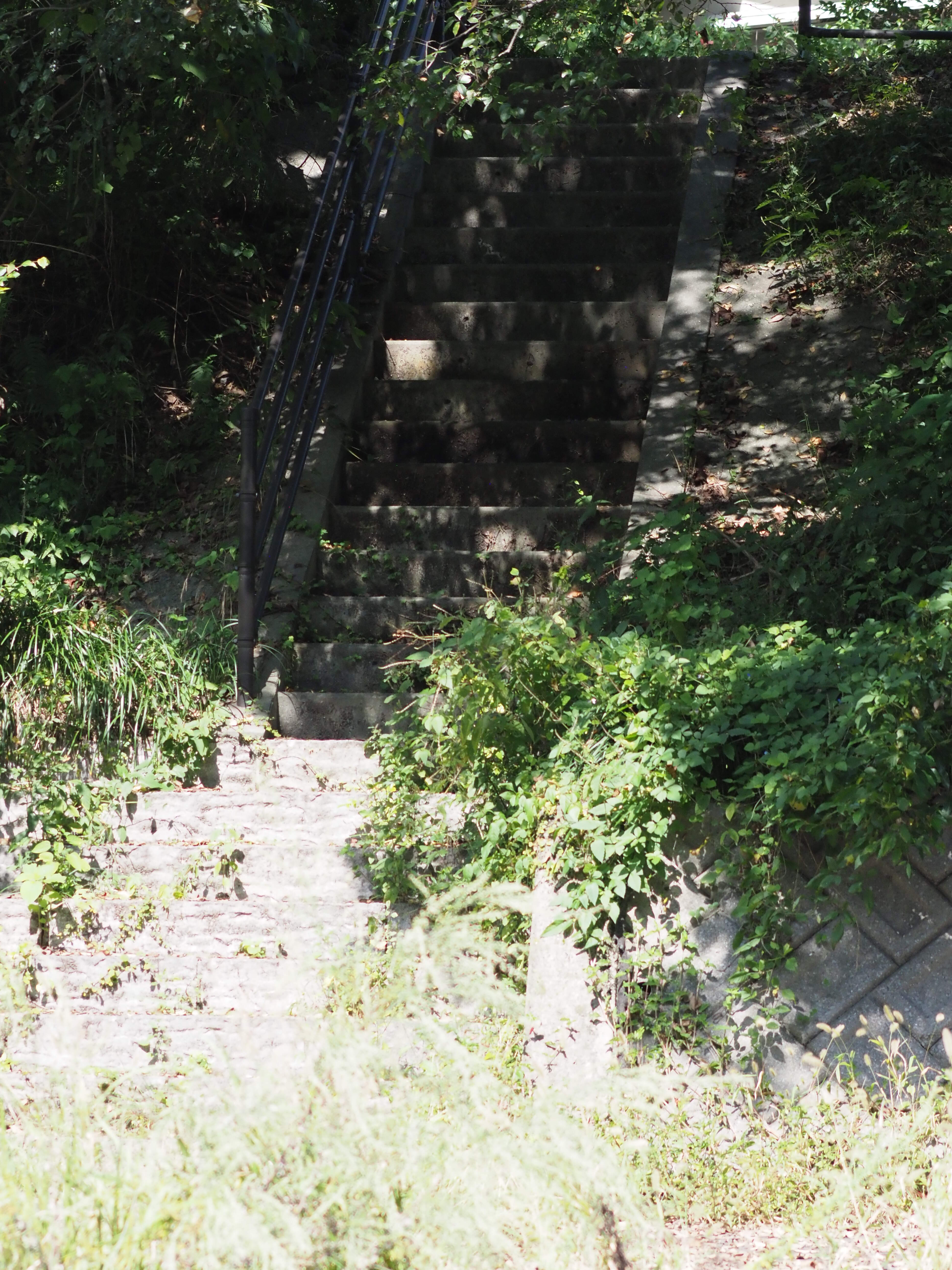 階段で扇山町側の道路へ上がります。 西別府橋の上流の砂防ダムは河川敷では越えられないためです(大冒険すれば越えられますが危険です)。
