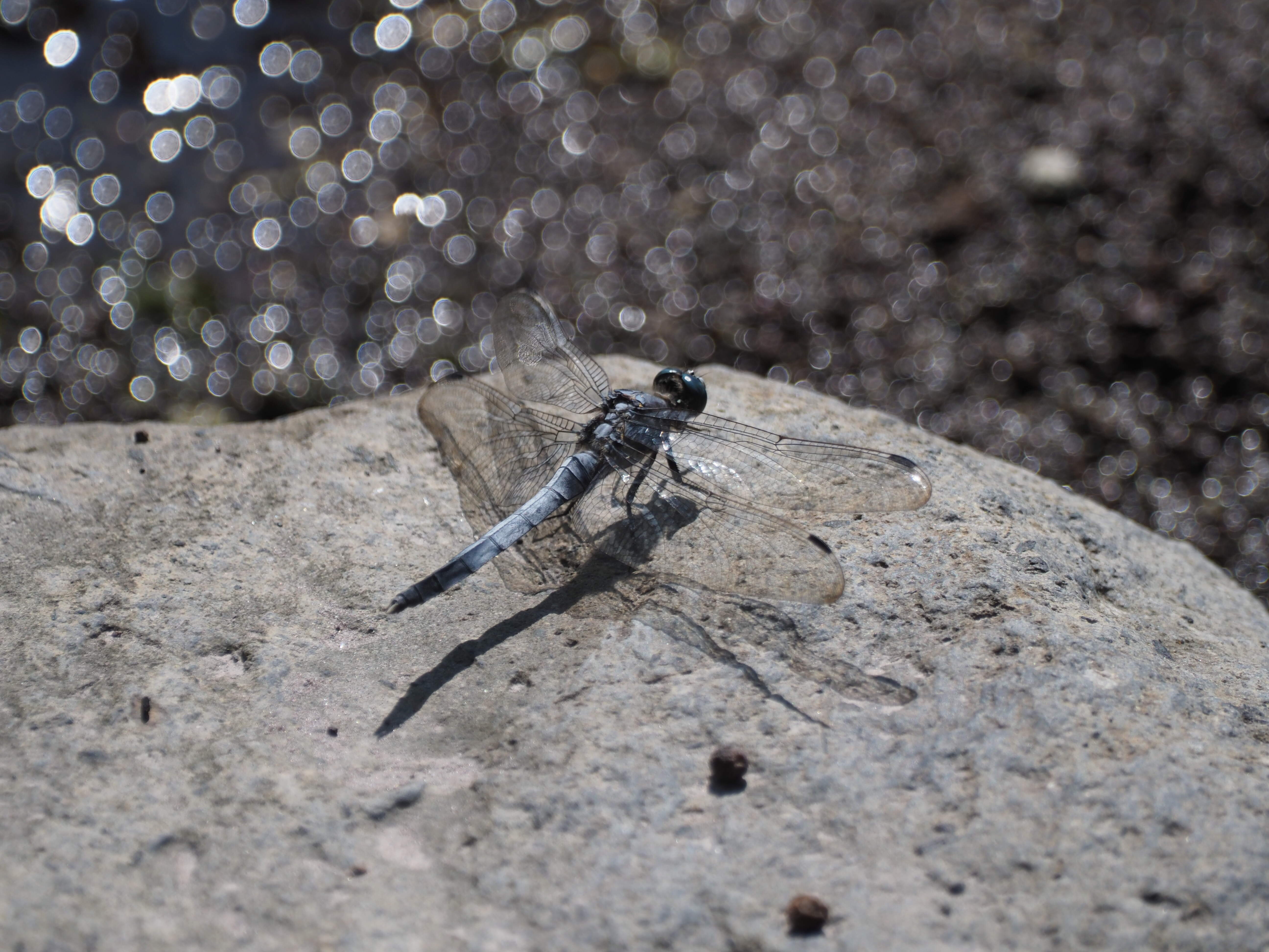 さらに少し進んだところでは、石に止まるシオカラトンボに出会いました。