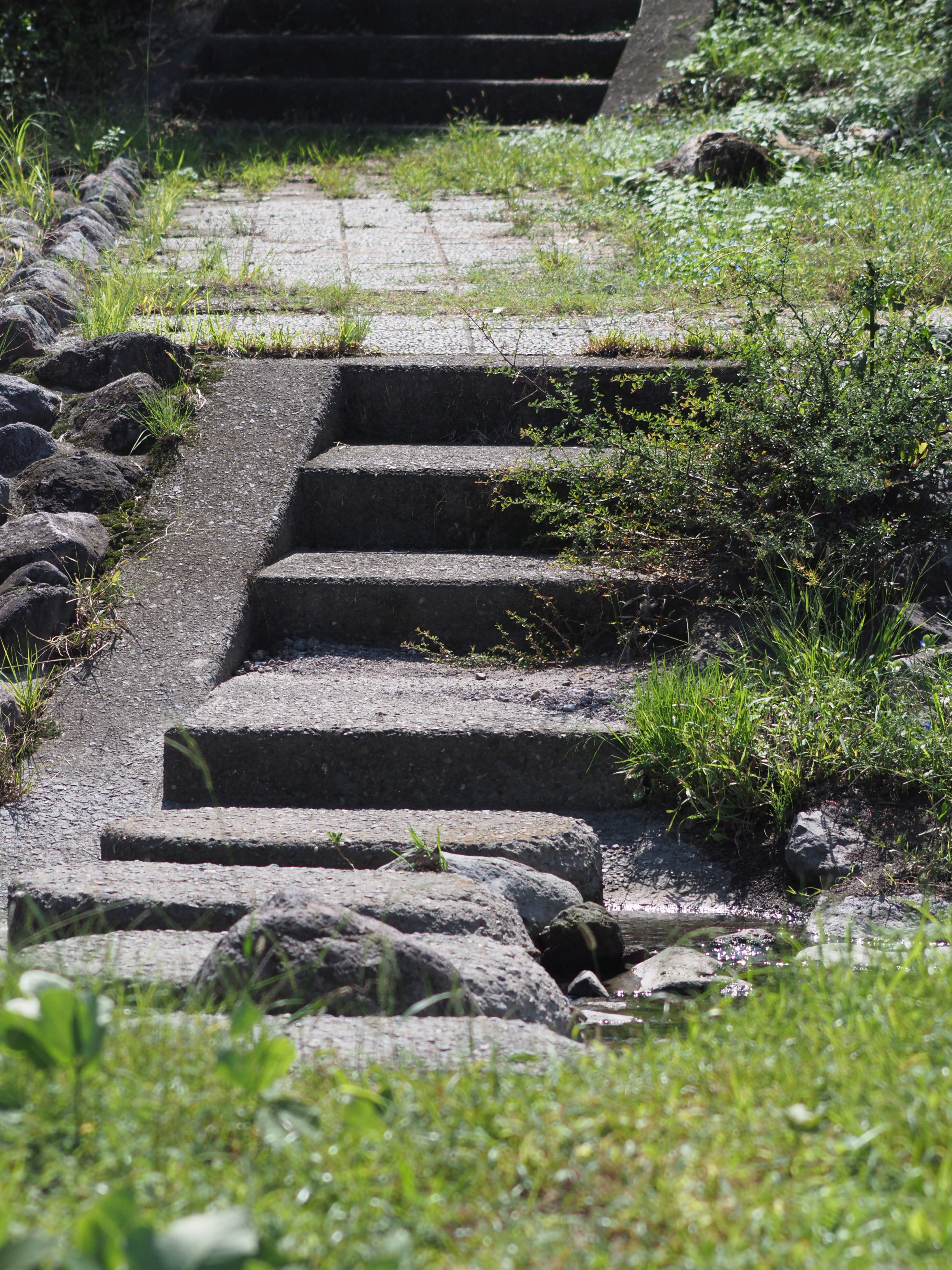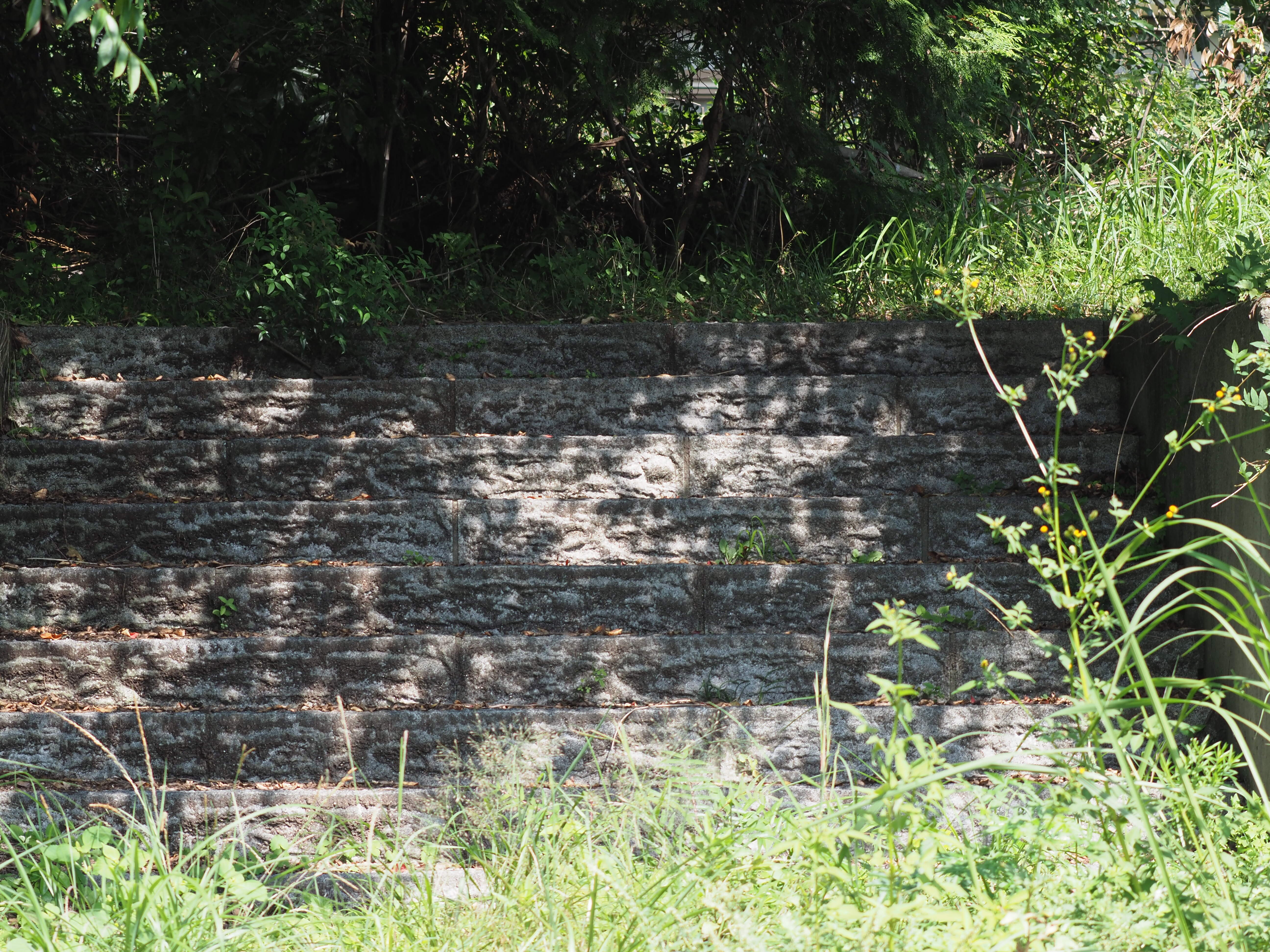 境川(別府市) 階段で土手上の草地へ画像を拡大する