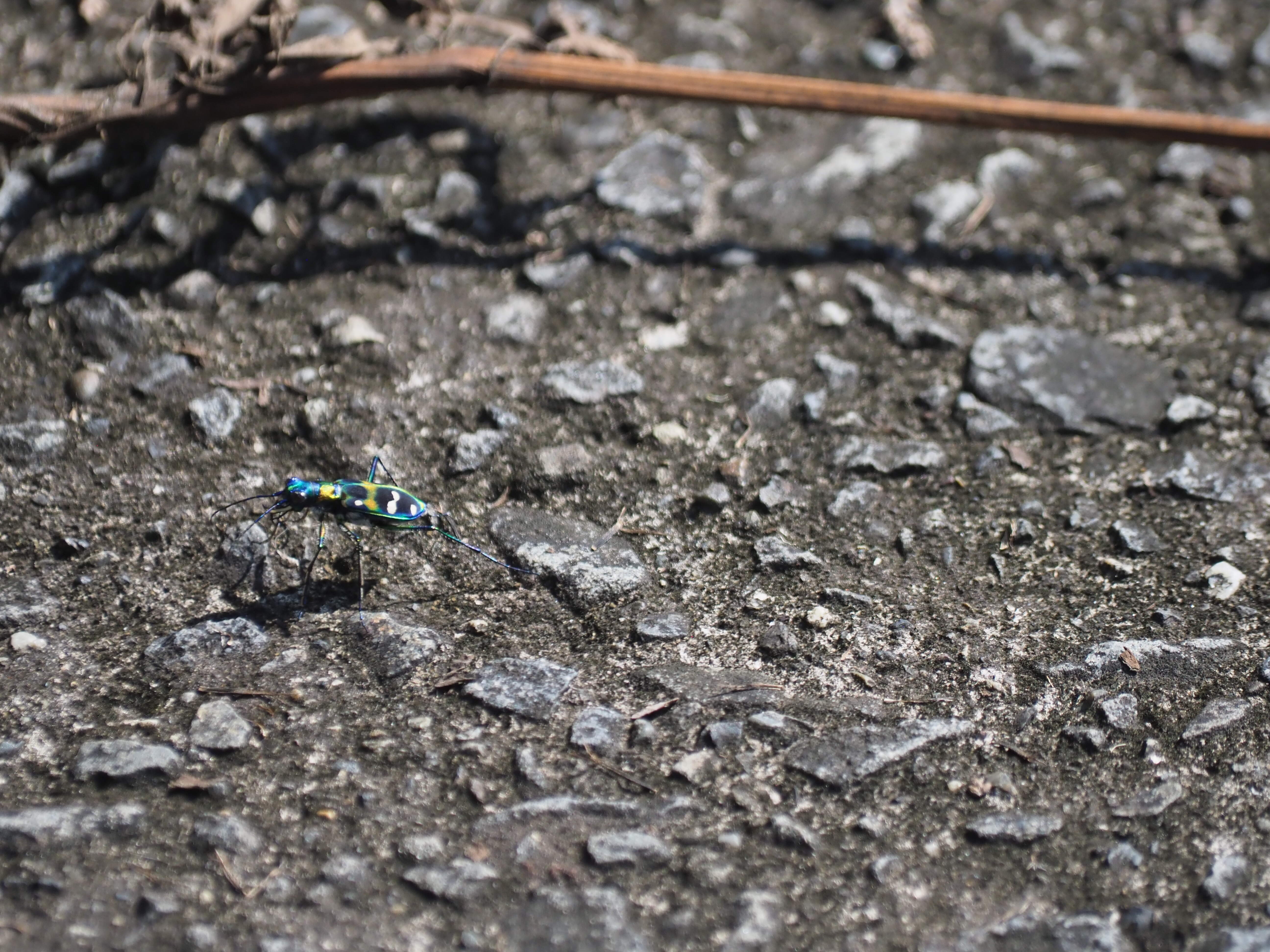 コスモス荘園店の少し上流ではナミハンミョウと出会いました。 相変わらず凶暴そうな面構えです。