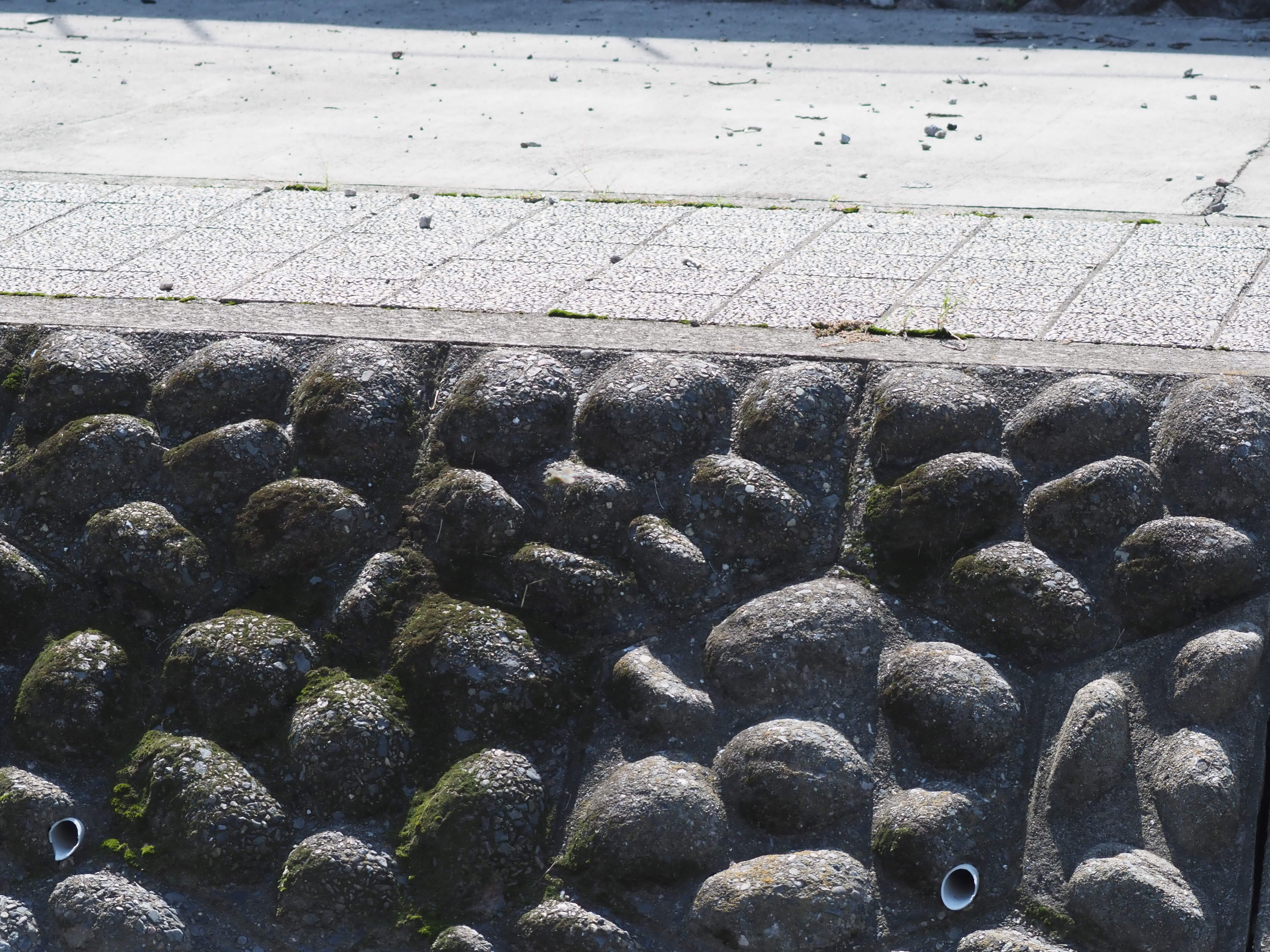 その先の砂防ダムは2段になっており、上段には五連・下段には四連の円形の飛び石が設置されています。