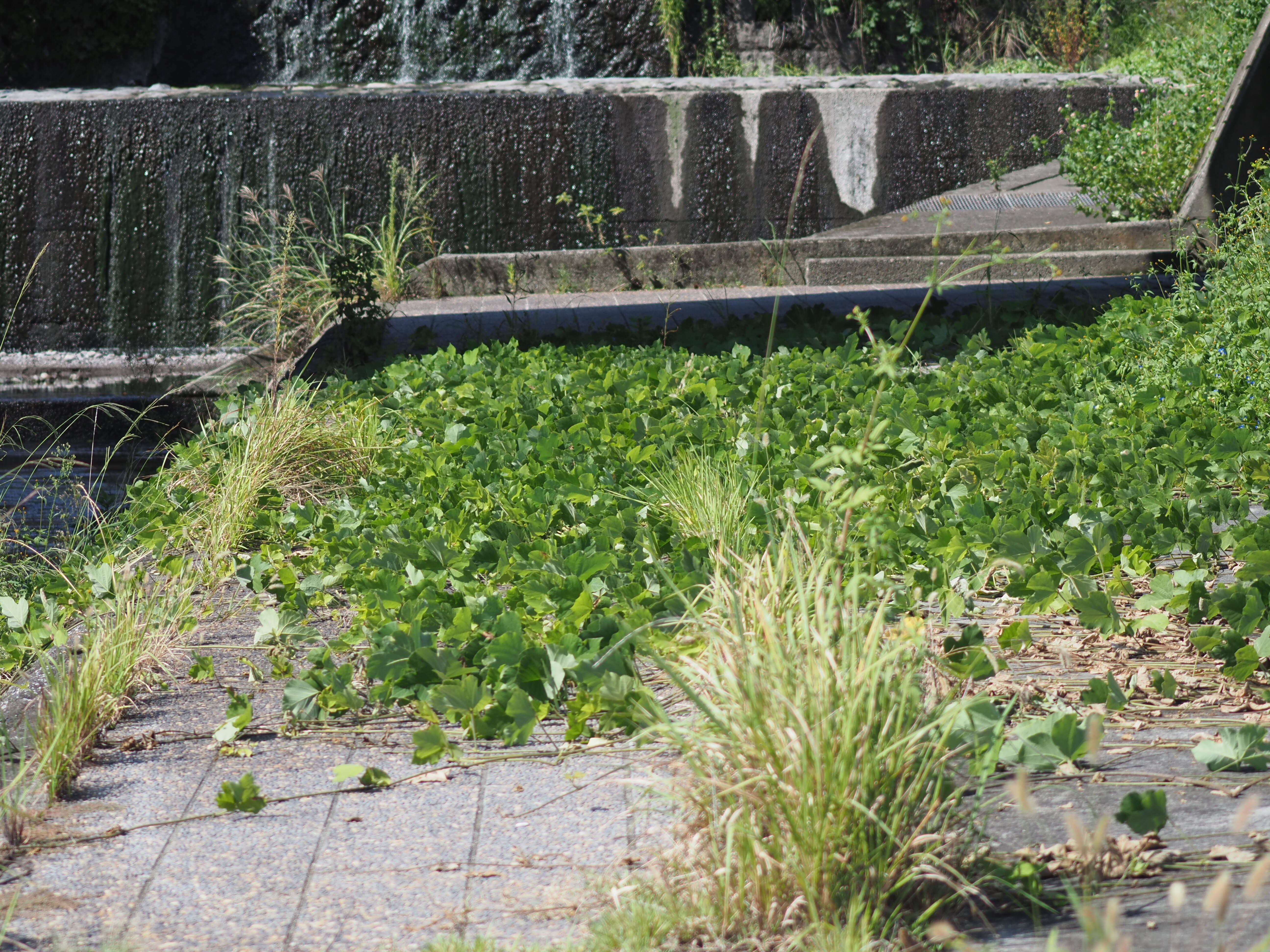 境川(別府市) 河川敷の歩道を覆う生い茂った雑草