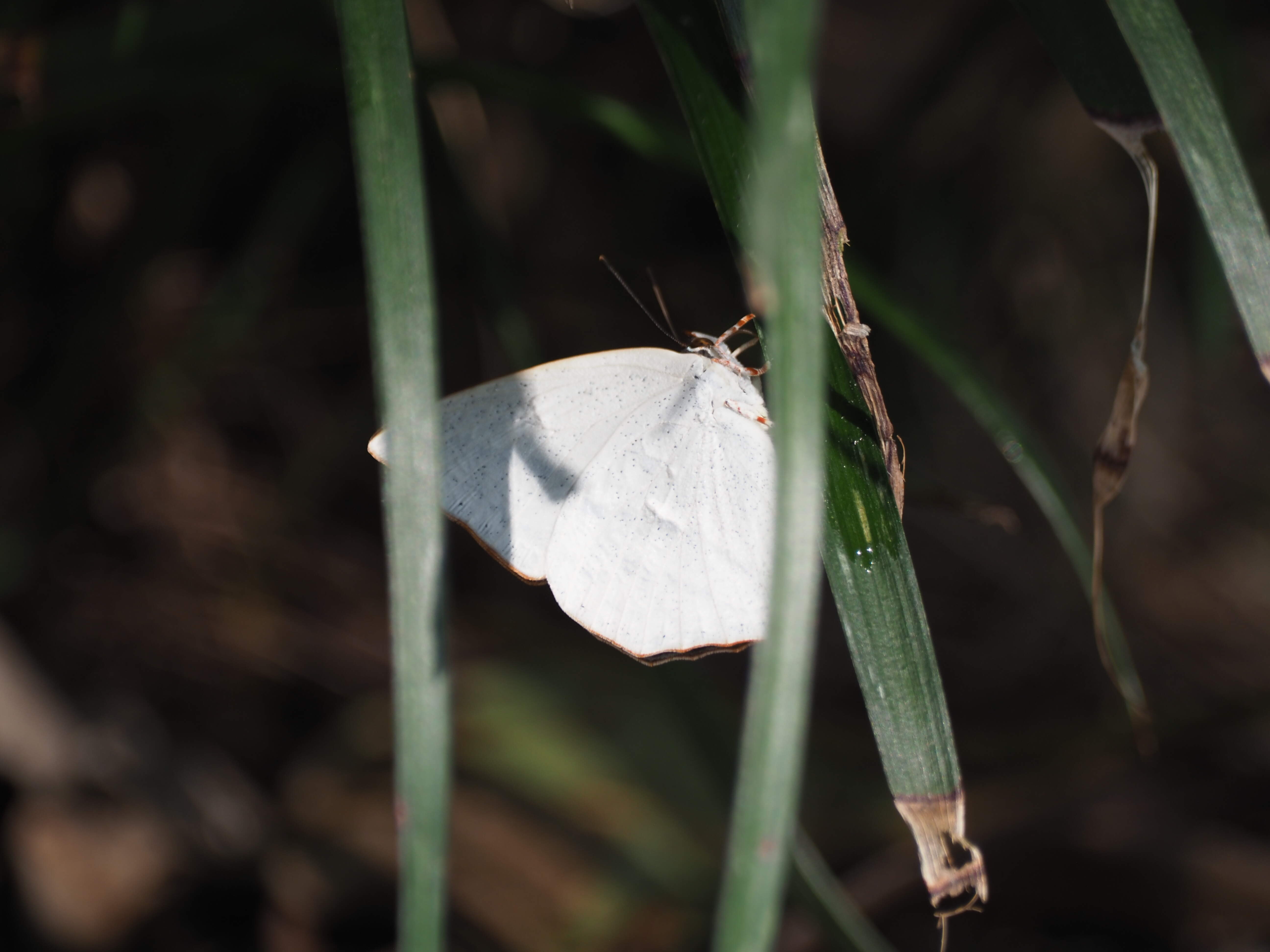 イナコスの橋を過ぎてしばらく進んだ先でのこと、翅の裏が真っ白な蝶に遭遇しました。 おっと、ウラギンシジミです。