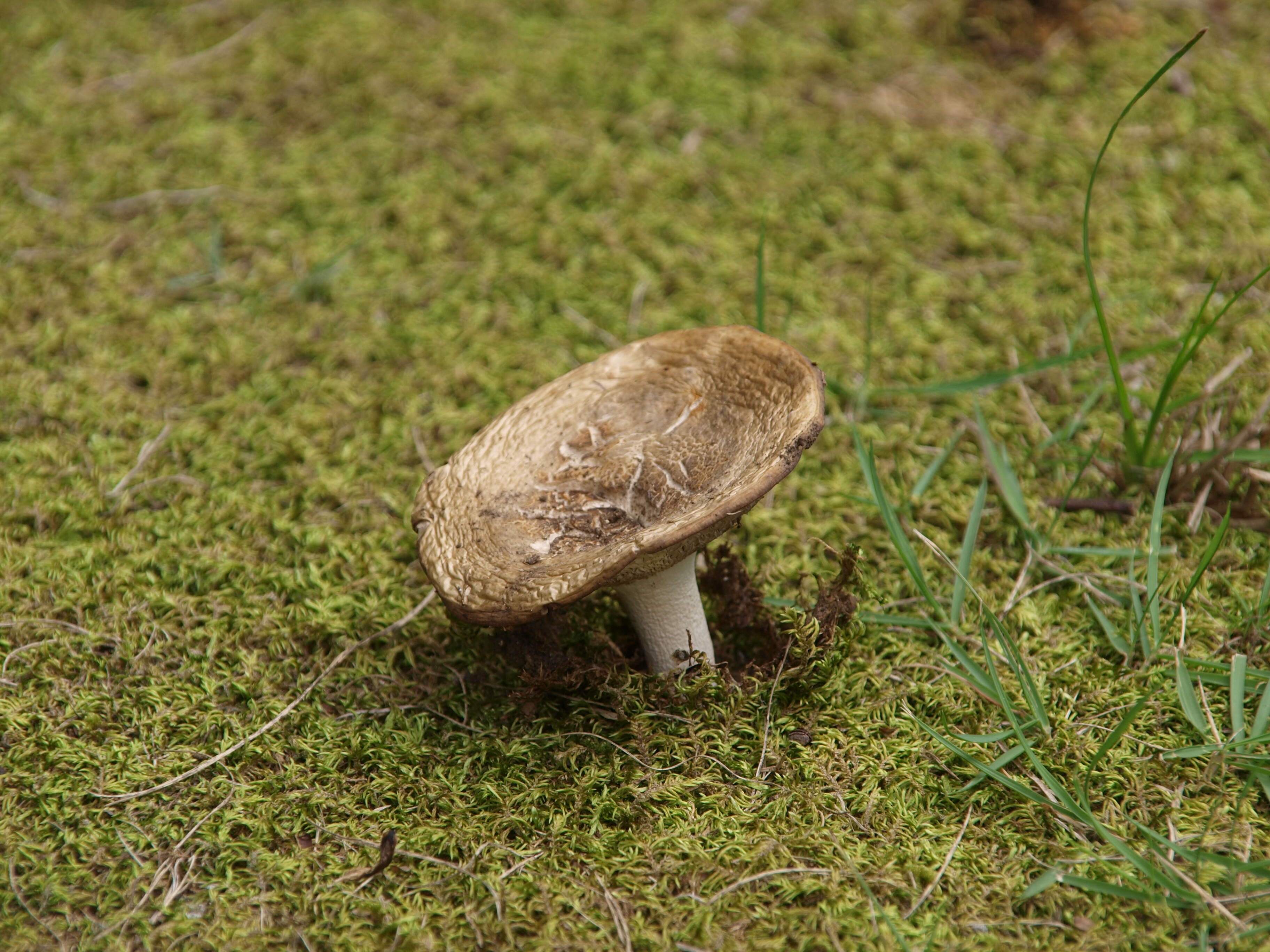 歩道ではなく草地の芝の上を進んでいると、目の前にキノコが現れました。 去年も一昨年もキノコは一度も見かけなかったのですが、なぜか今年はキノコをよく見かけます。