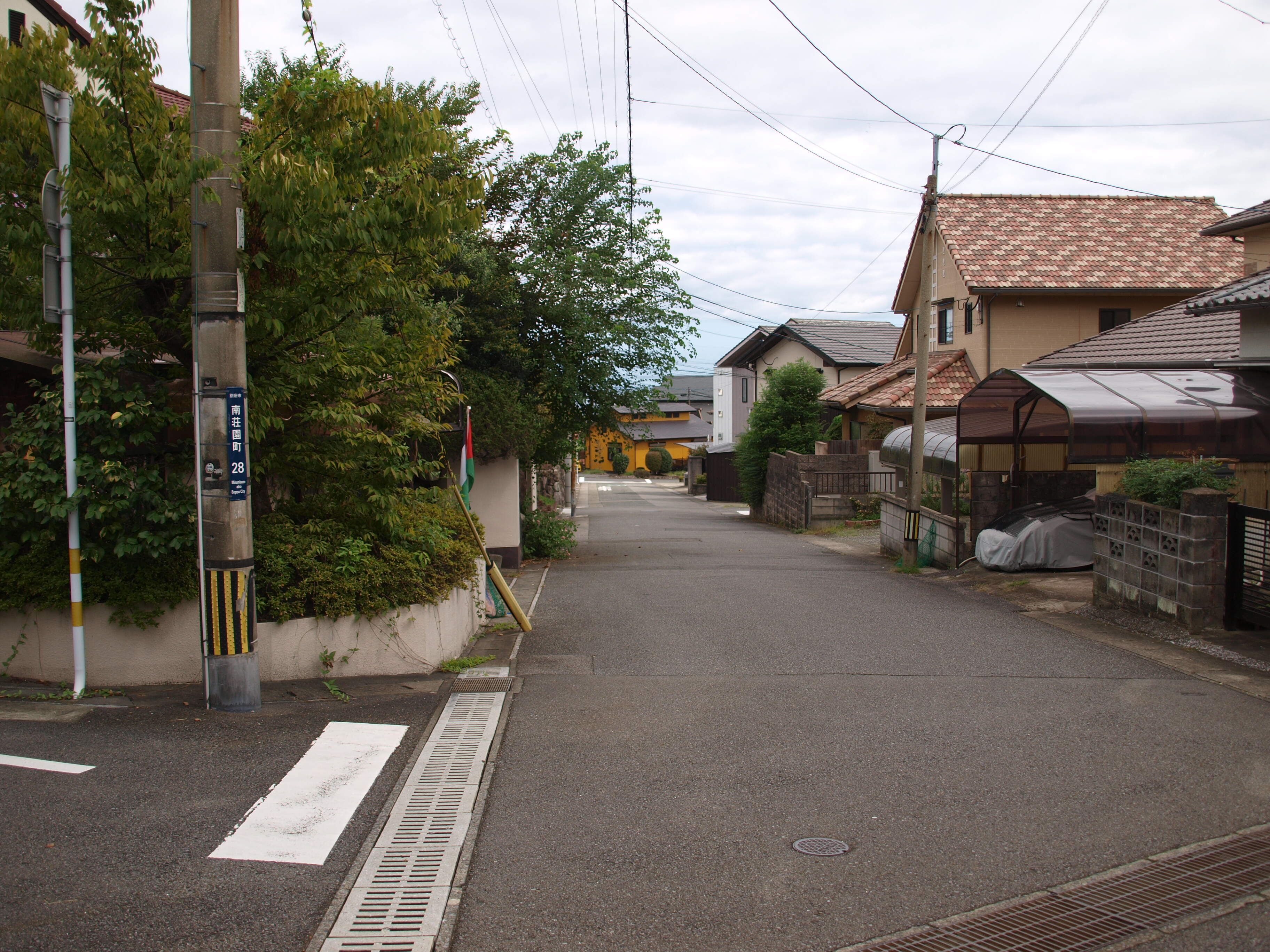 南荘園町の住宅地を下っていきます。 下り続けて六角温泉へ出るか左折して最短でコスモス荘園店へ向かうか、悩ましいところです。