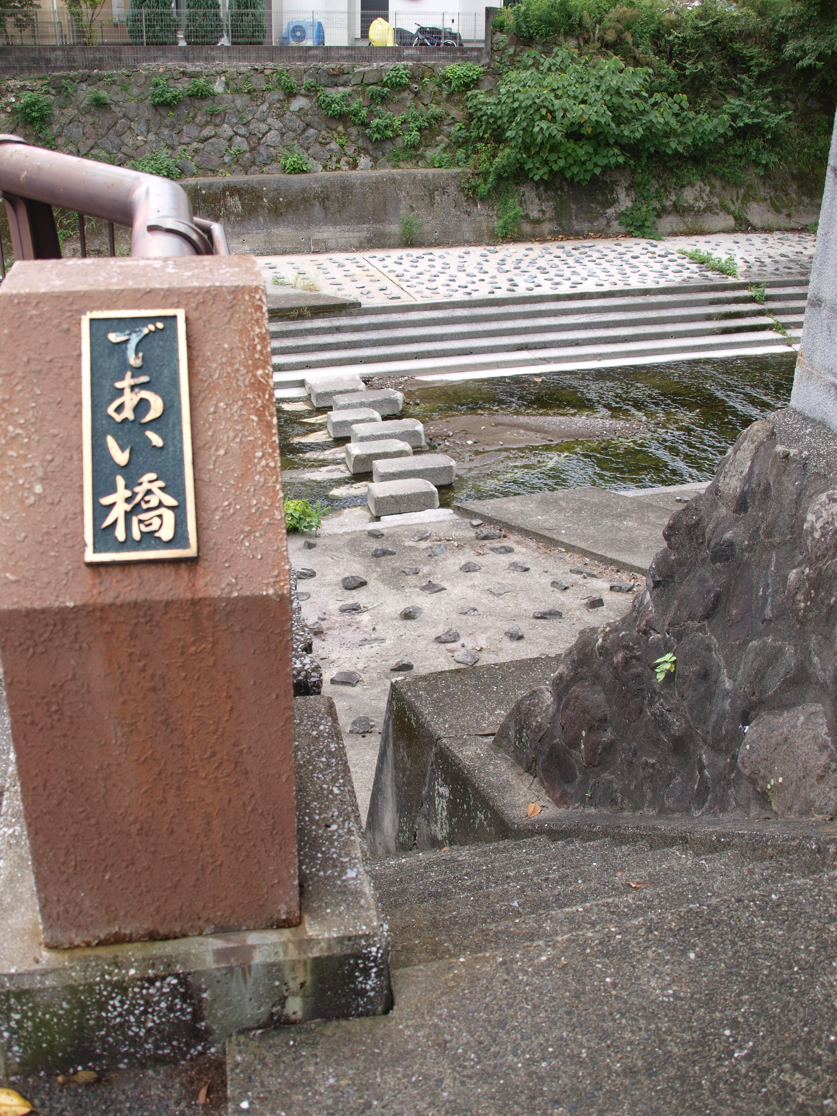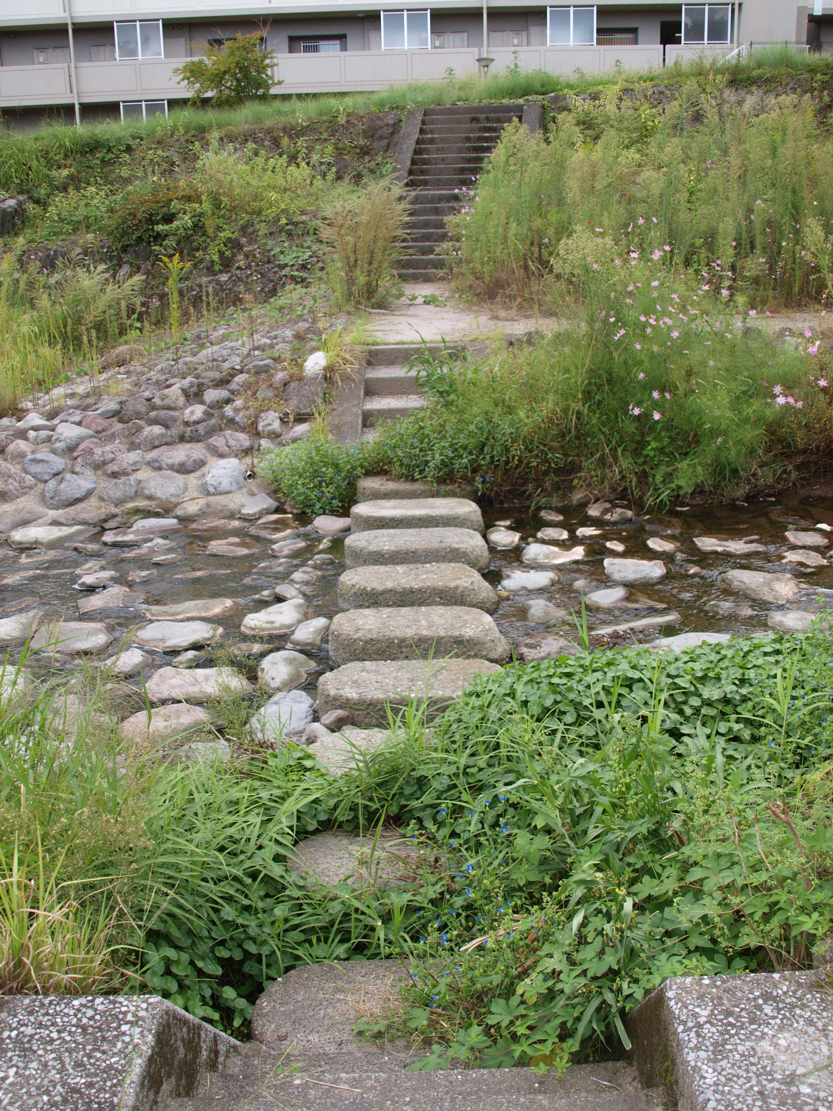 境川(別府市) 飛び石で右岸へ渡って土手上の草地へ画像を拡大する
