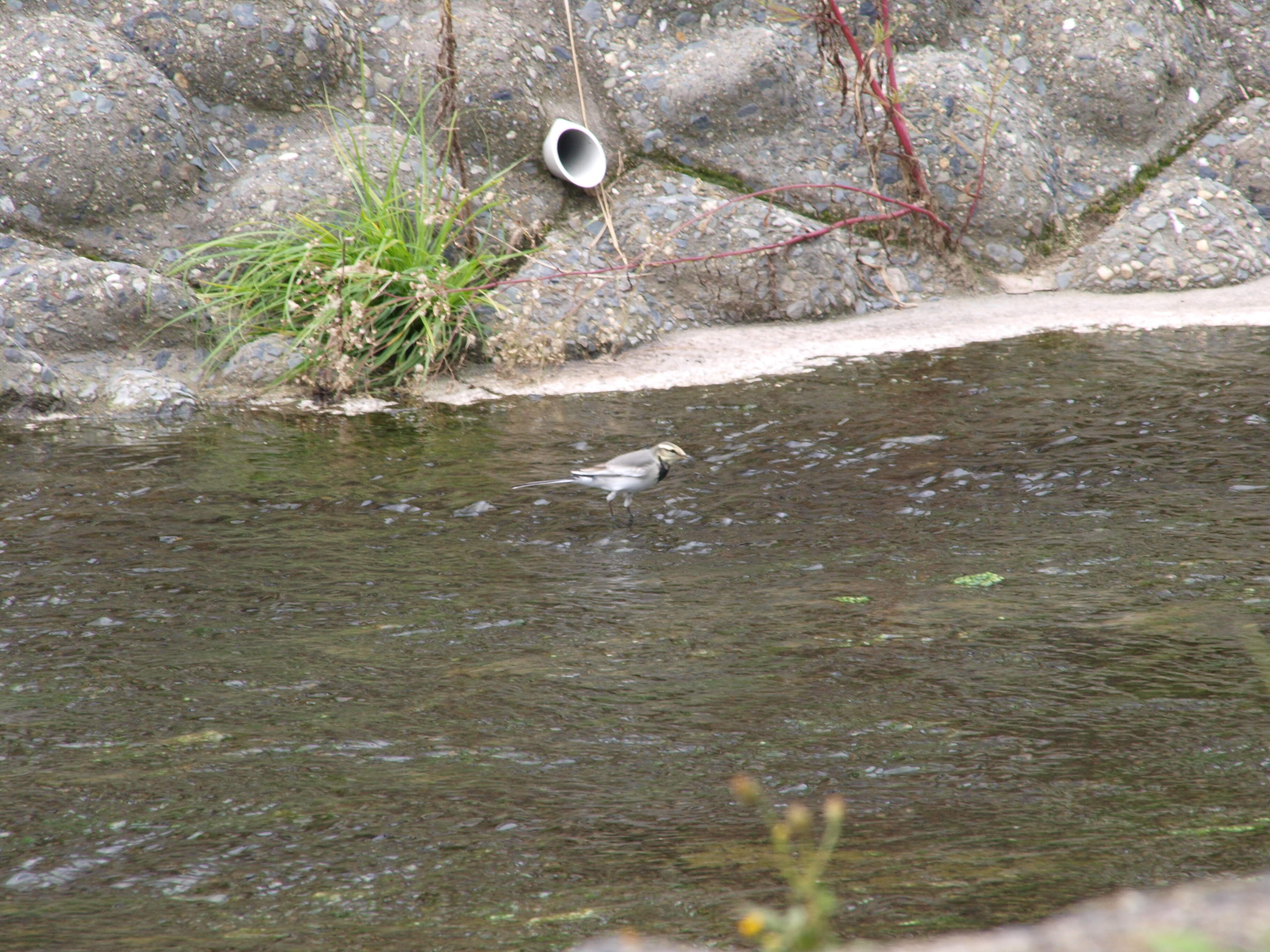 コスモス荘園店で飲み物を購入し、河川敷へ戻って上流へ進むとハクセキレイがいました。 目の下が少し黄色いので若鳥だと思われます。