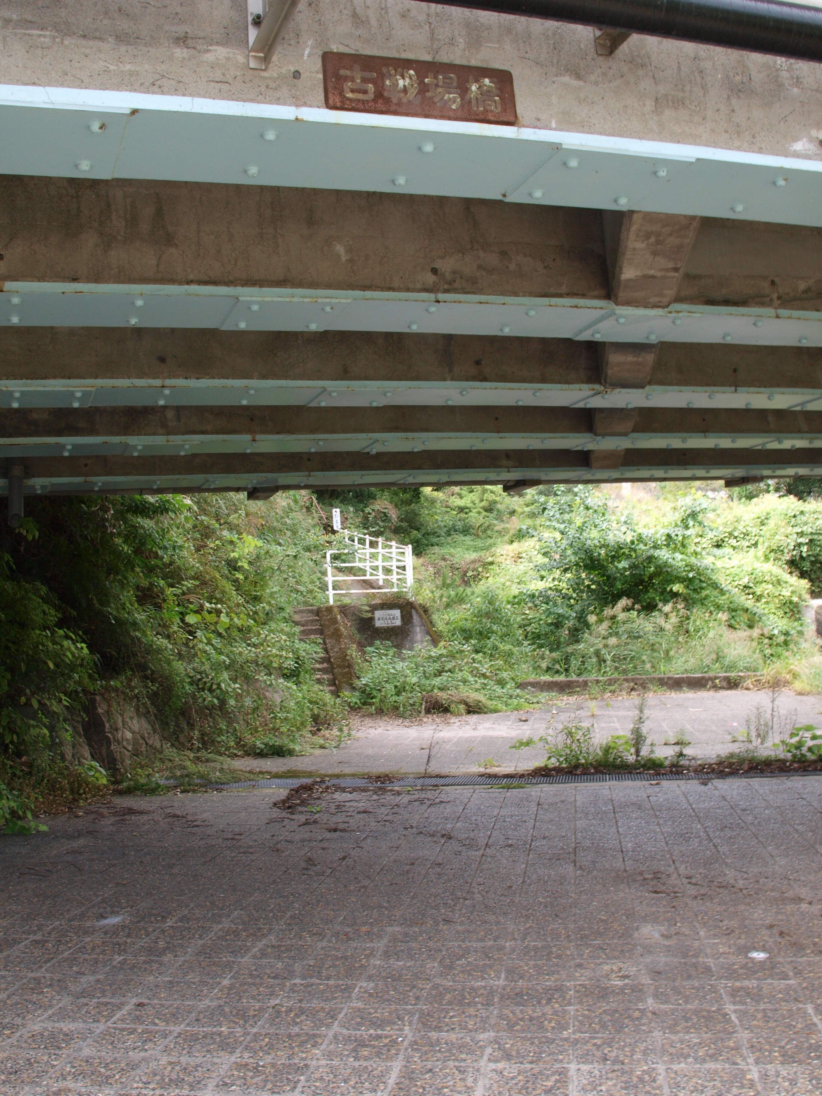 橋を渡った先からも河川敷へ下ることができます。 ただし、階段の踏み面の奥行きが狭いため靴のかかとをジャリジャリと擦ることになります。
