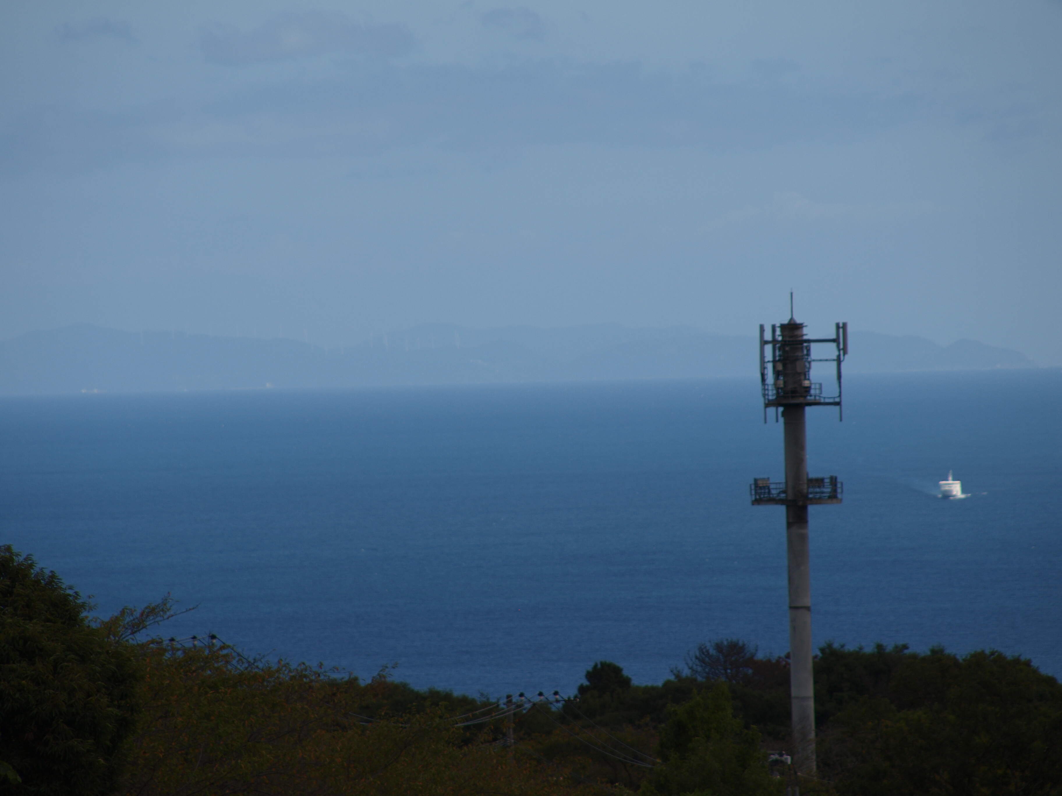 境川(別府市) 久しぶりに見えた四国の風力発電用風車画像を拡大する