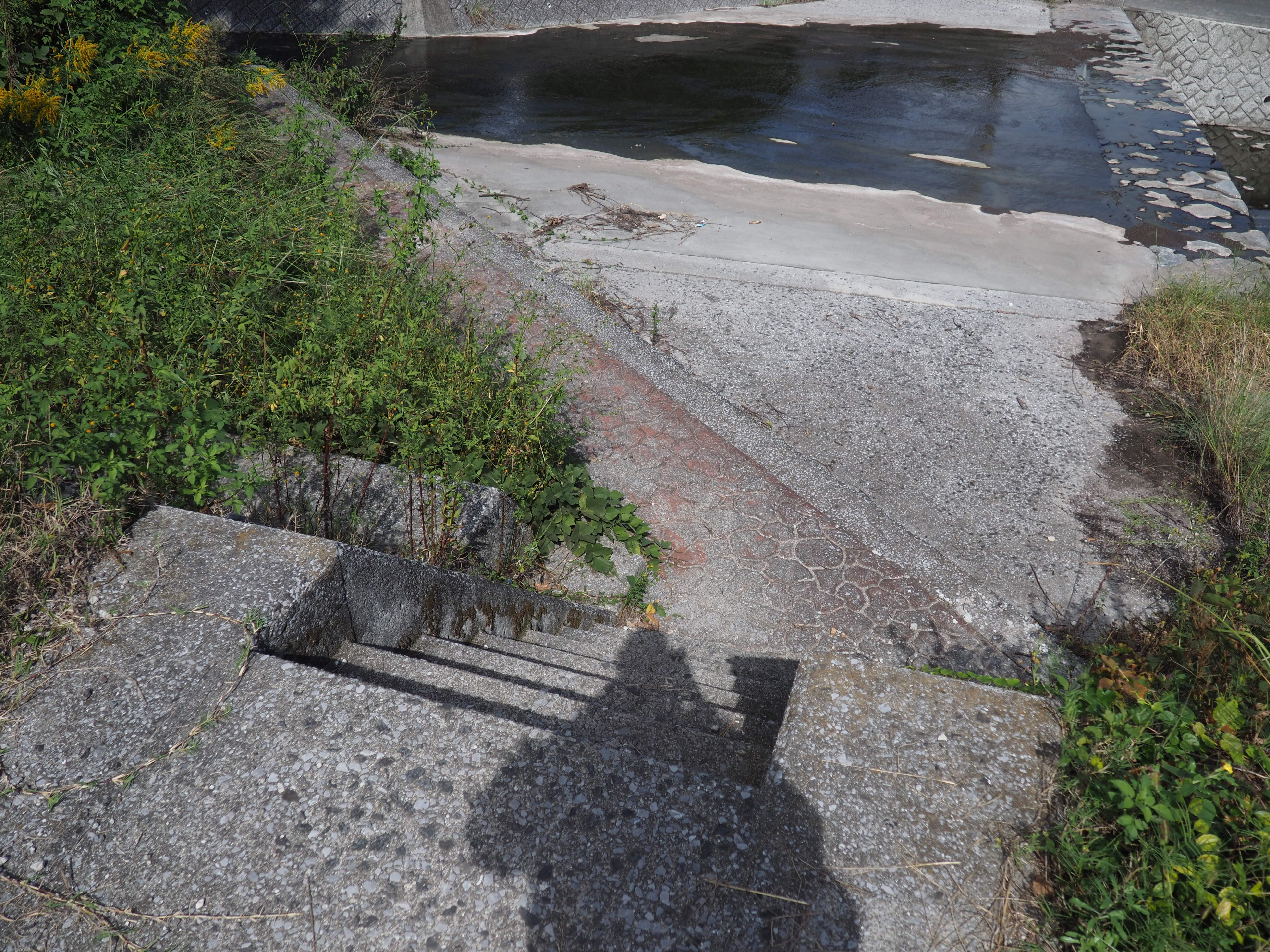 キオビエダシャクには出会えぬまま境川に到着しました。 階段で河川敷へ下ります。