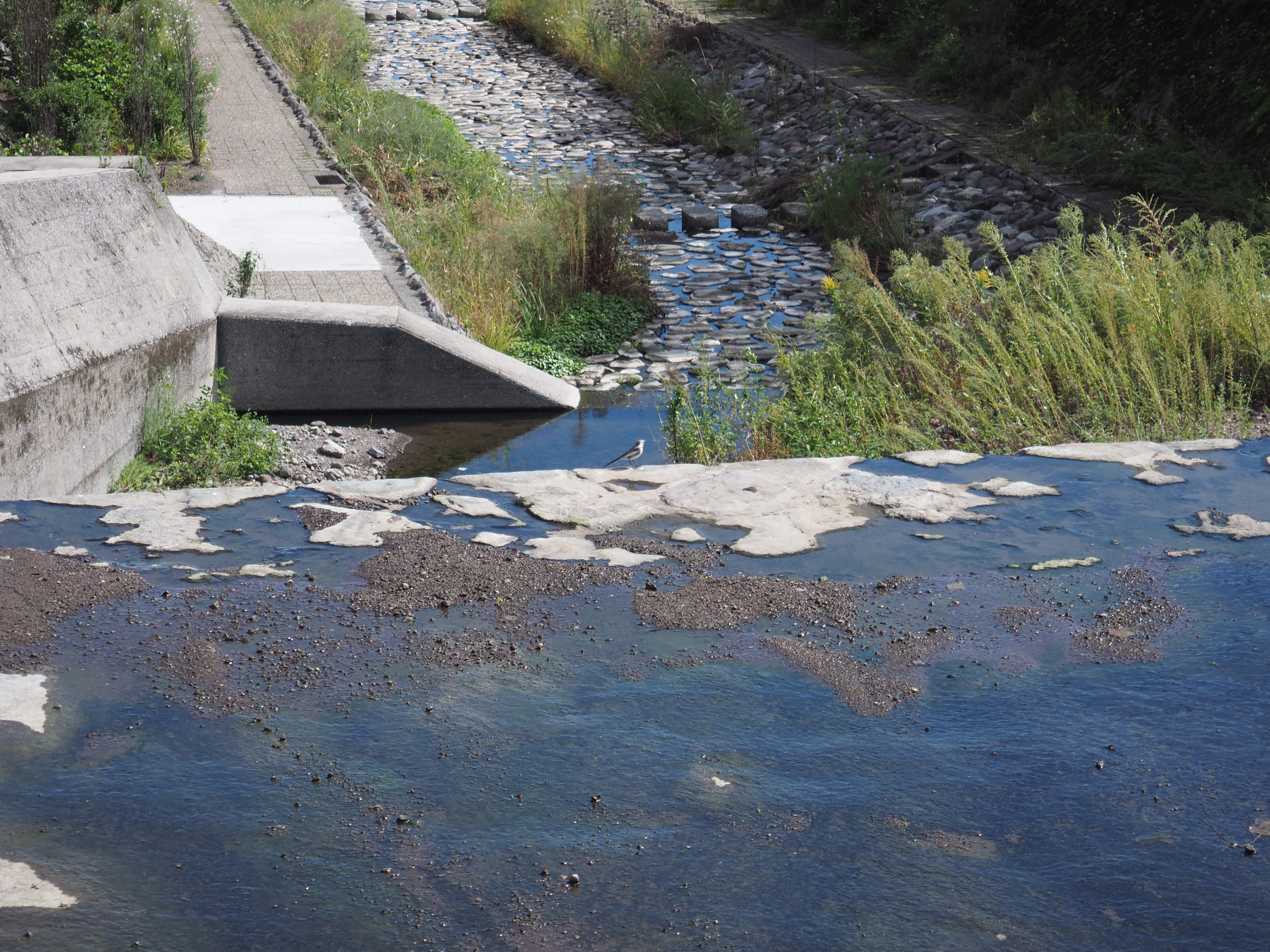 境川(別府市) 古戦場橋をくぐってさらに下流へ