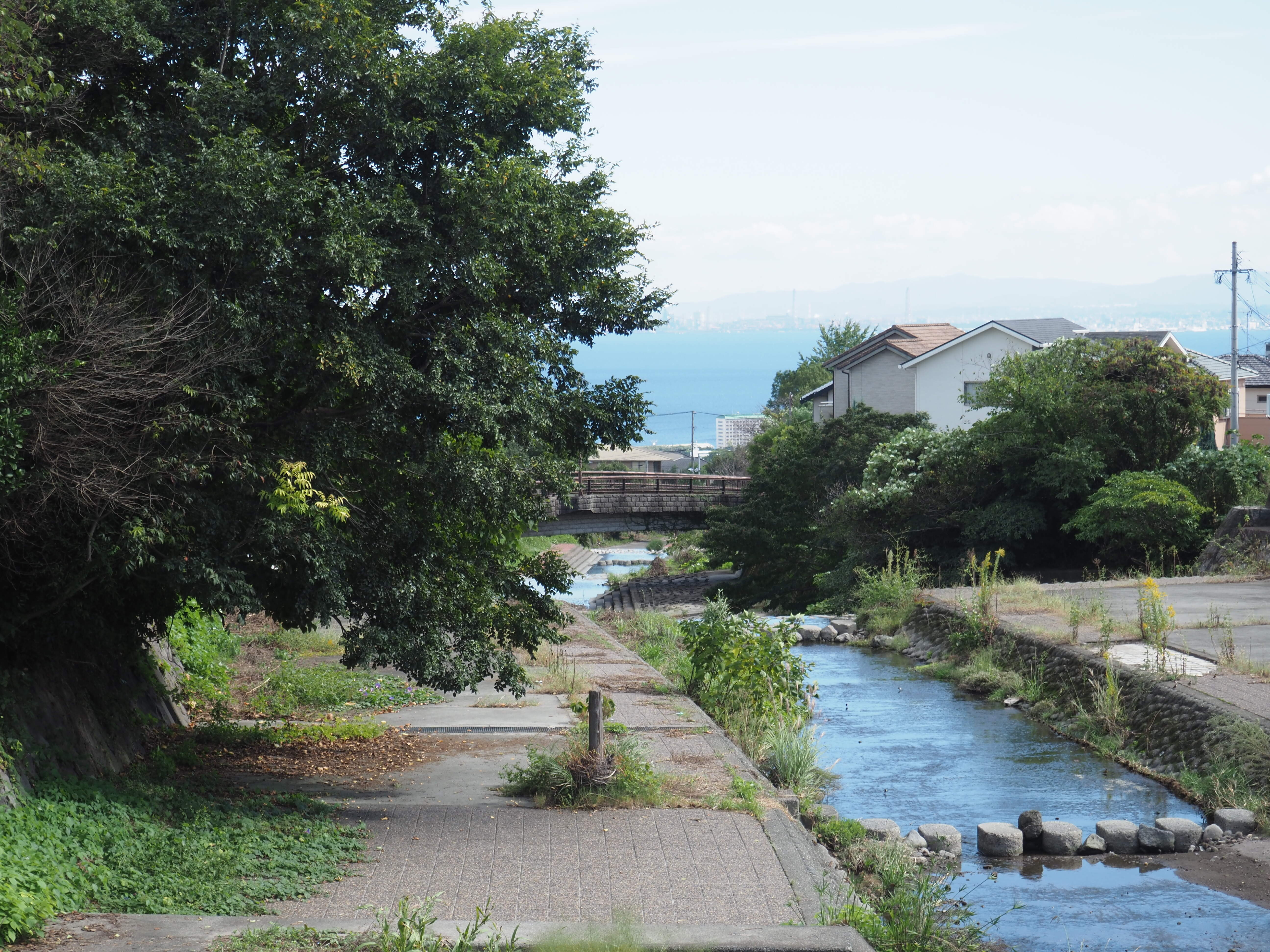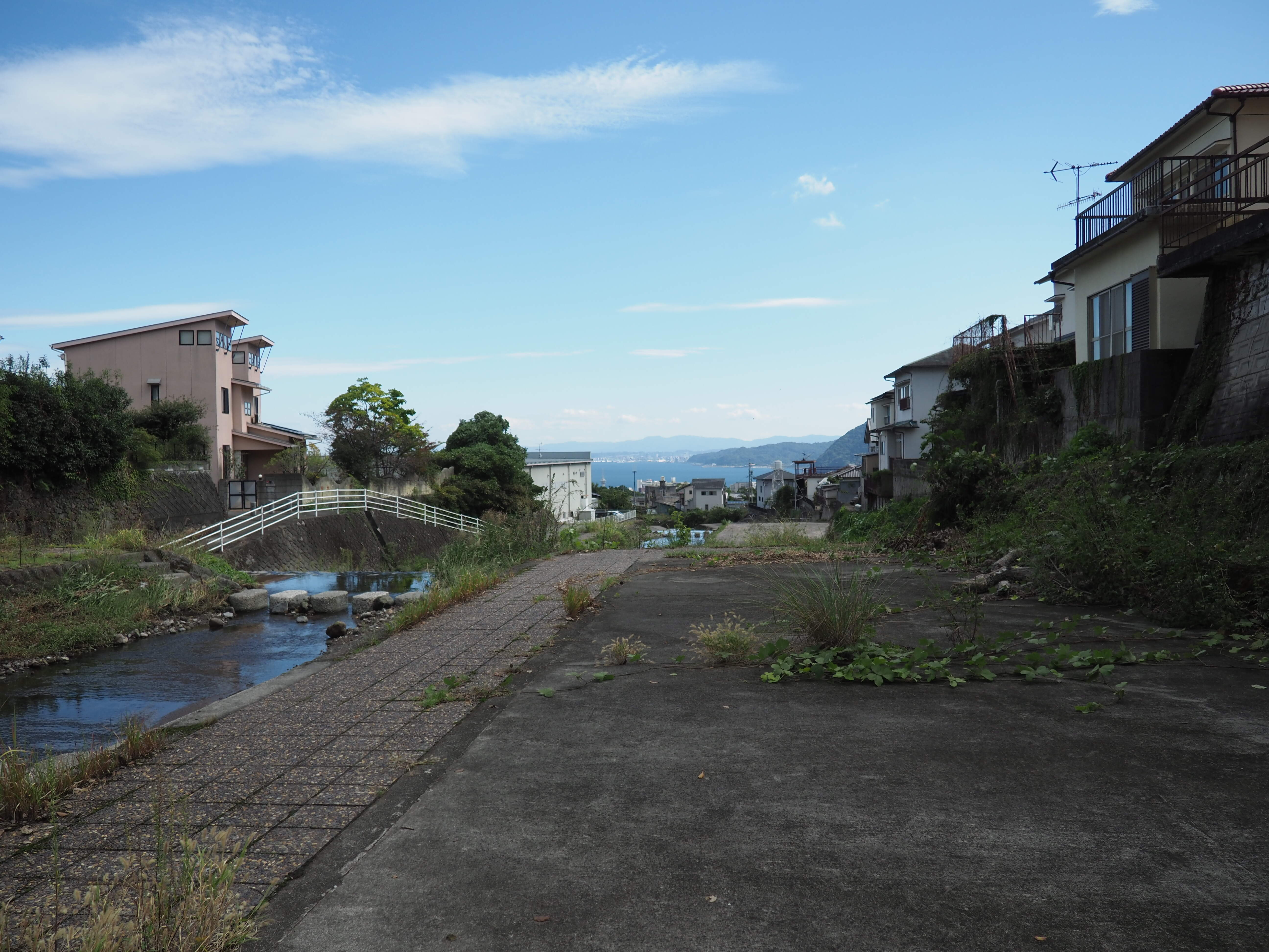 南立石公園町(別府市) 西別府団地の上の道で境川へ画像を拡大する