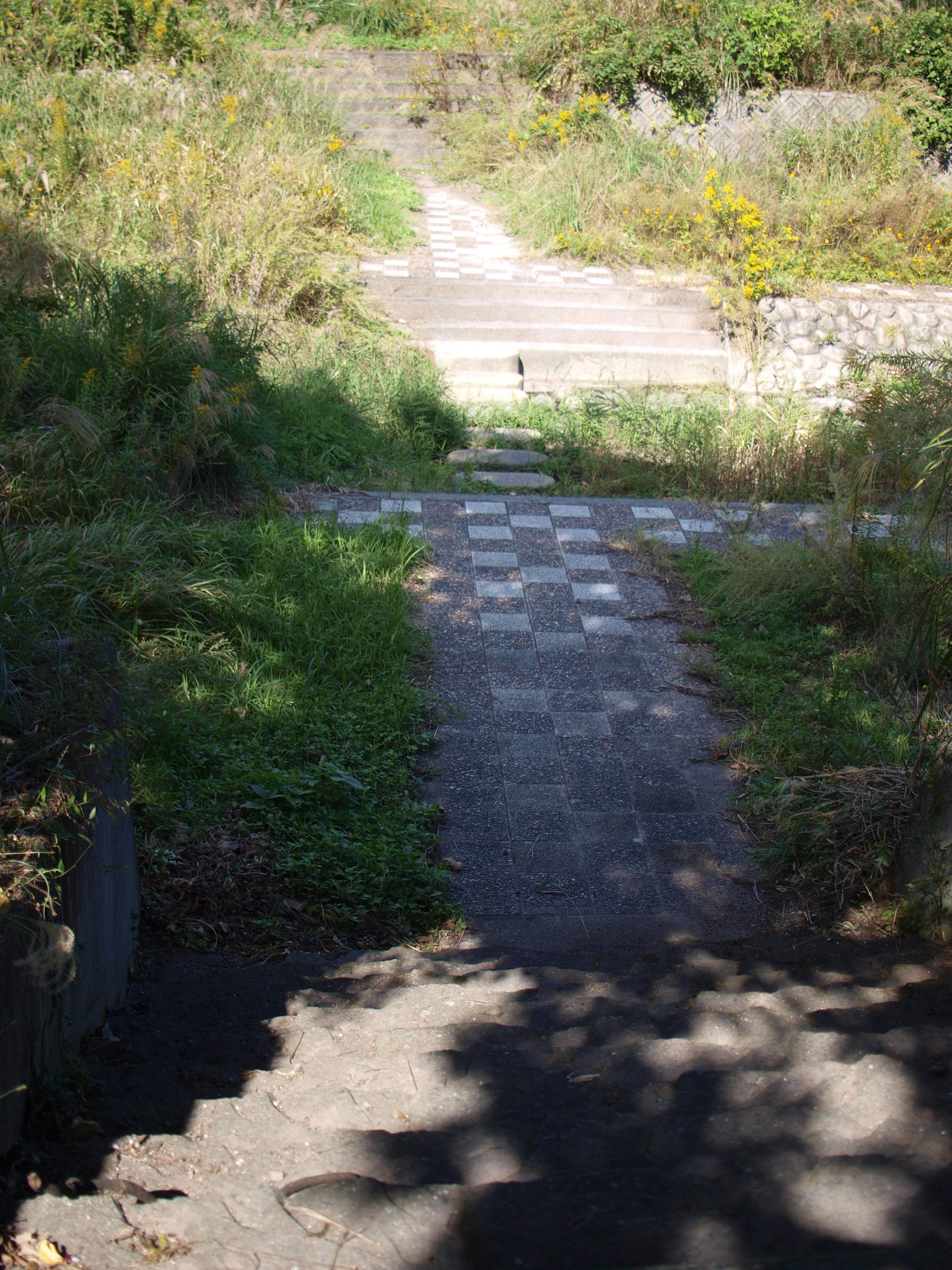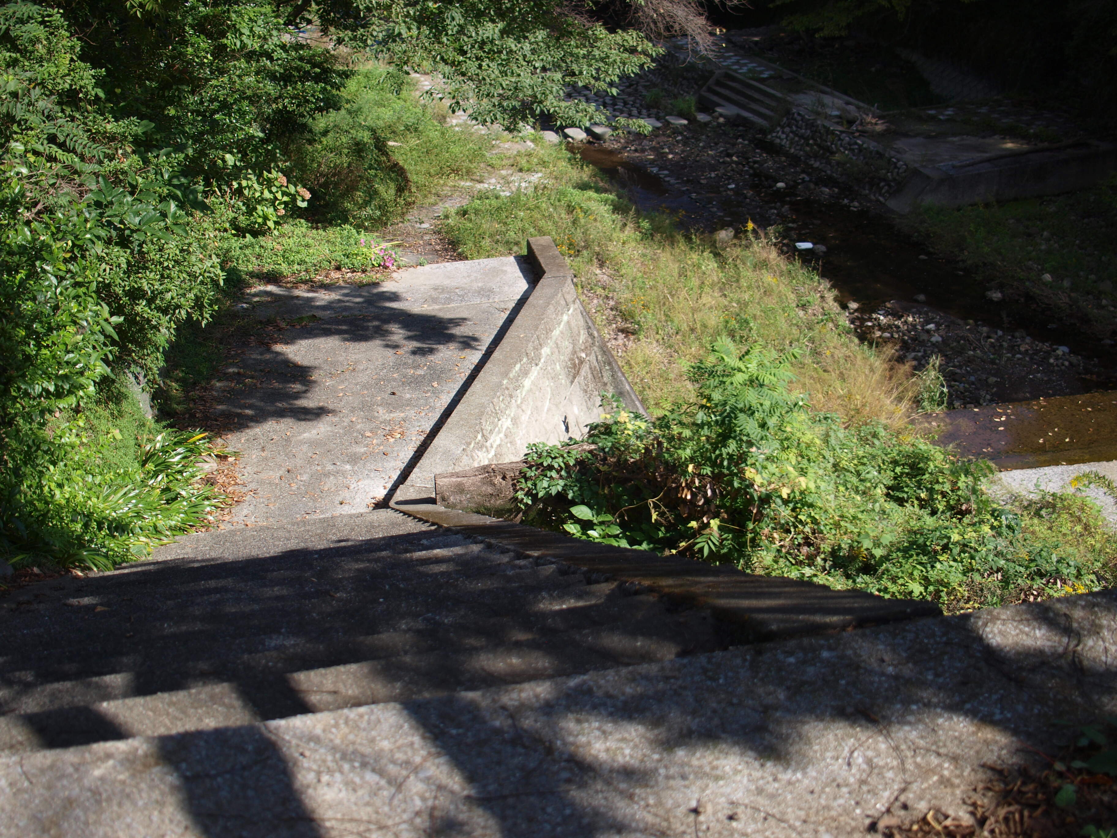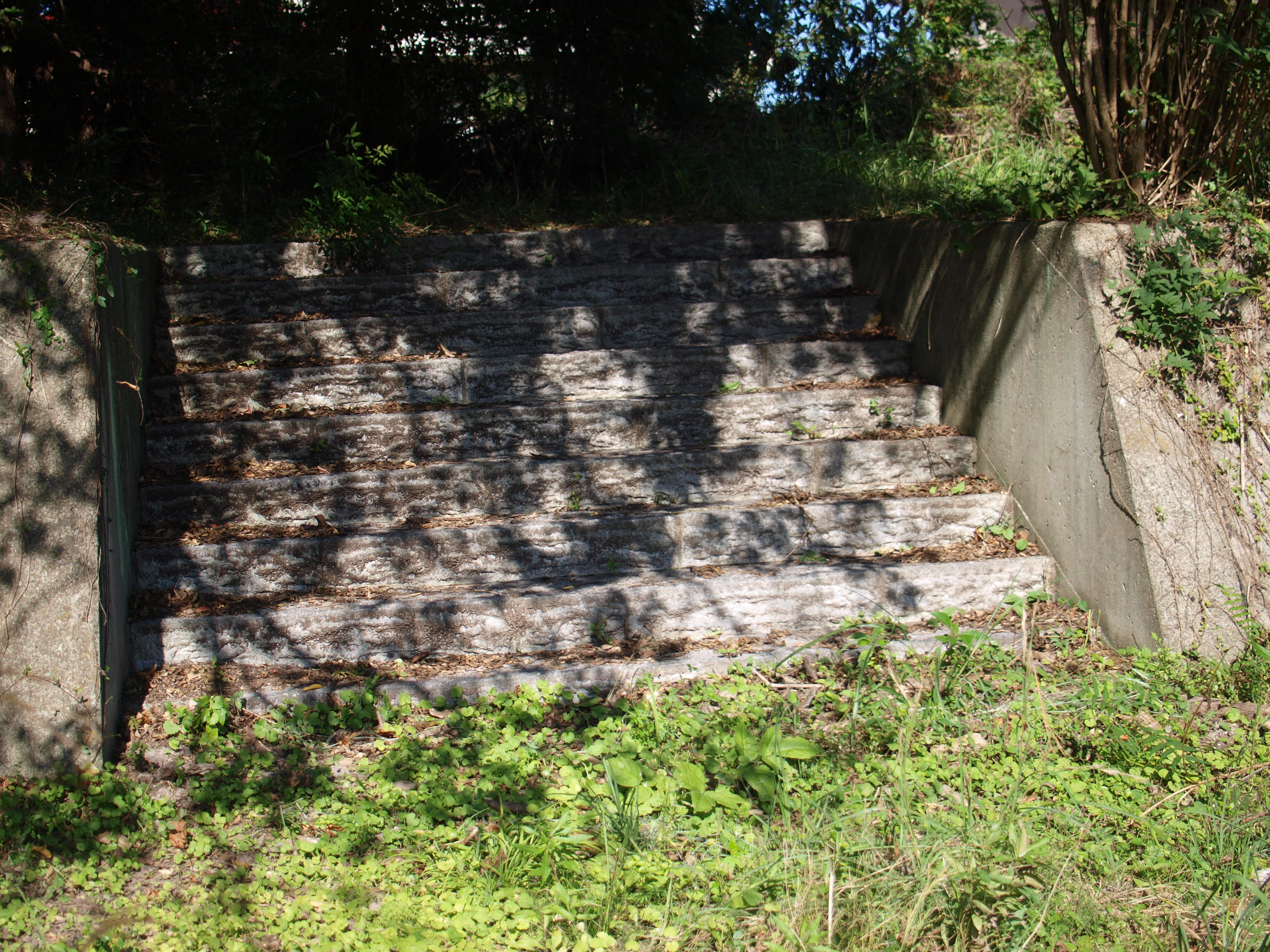 階段を下った先は雑草が伸びています。 この辺りはマムシやヤマカガシが出ますから、こういう場所ではやや気を使います。