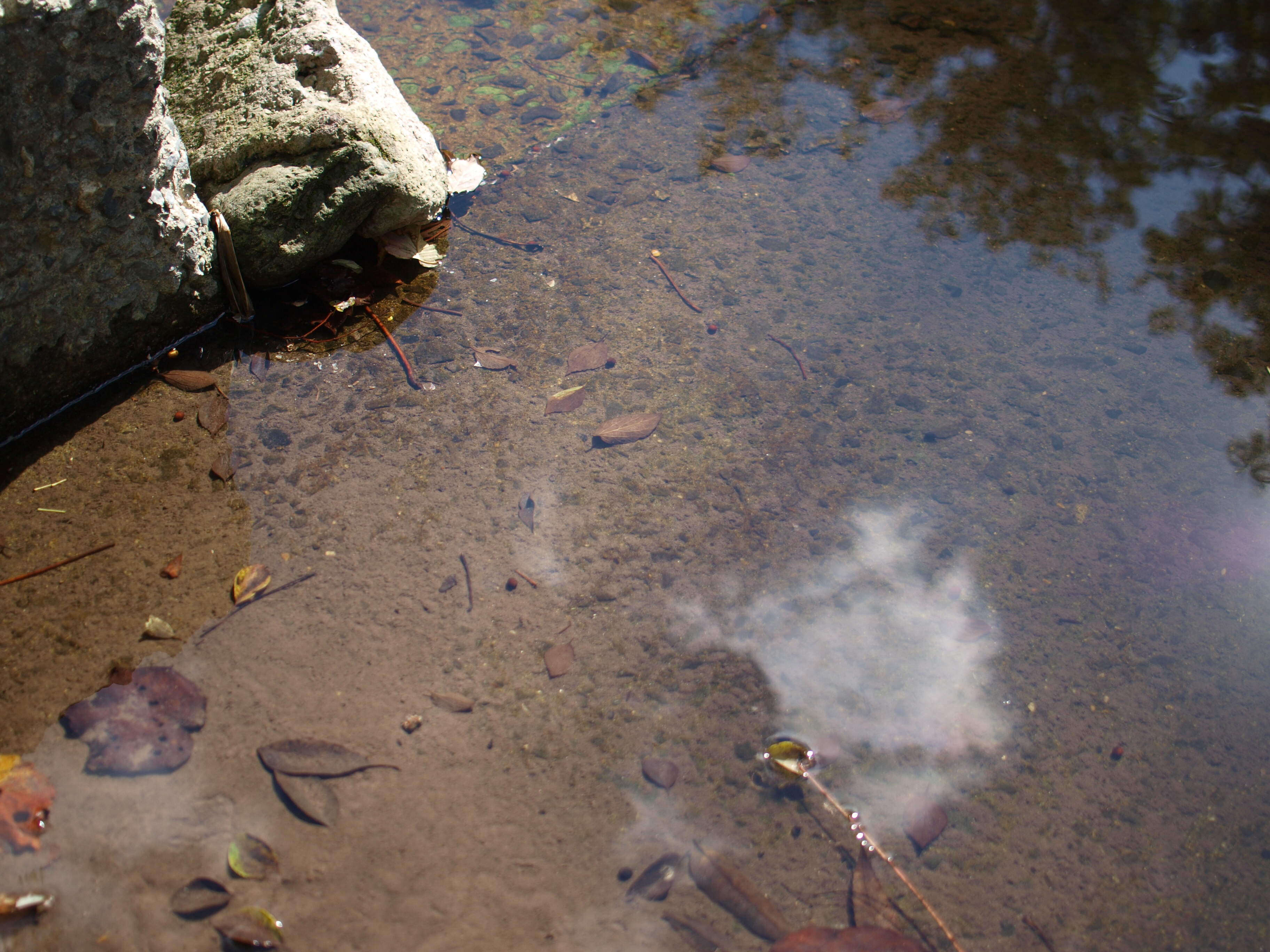 いた、いました。 25mm(35mm換算:50mm)なので見づらいですが、ギリギリ写っています。 稚魚なのか針子なのか、とにかく小さいです。
