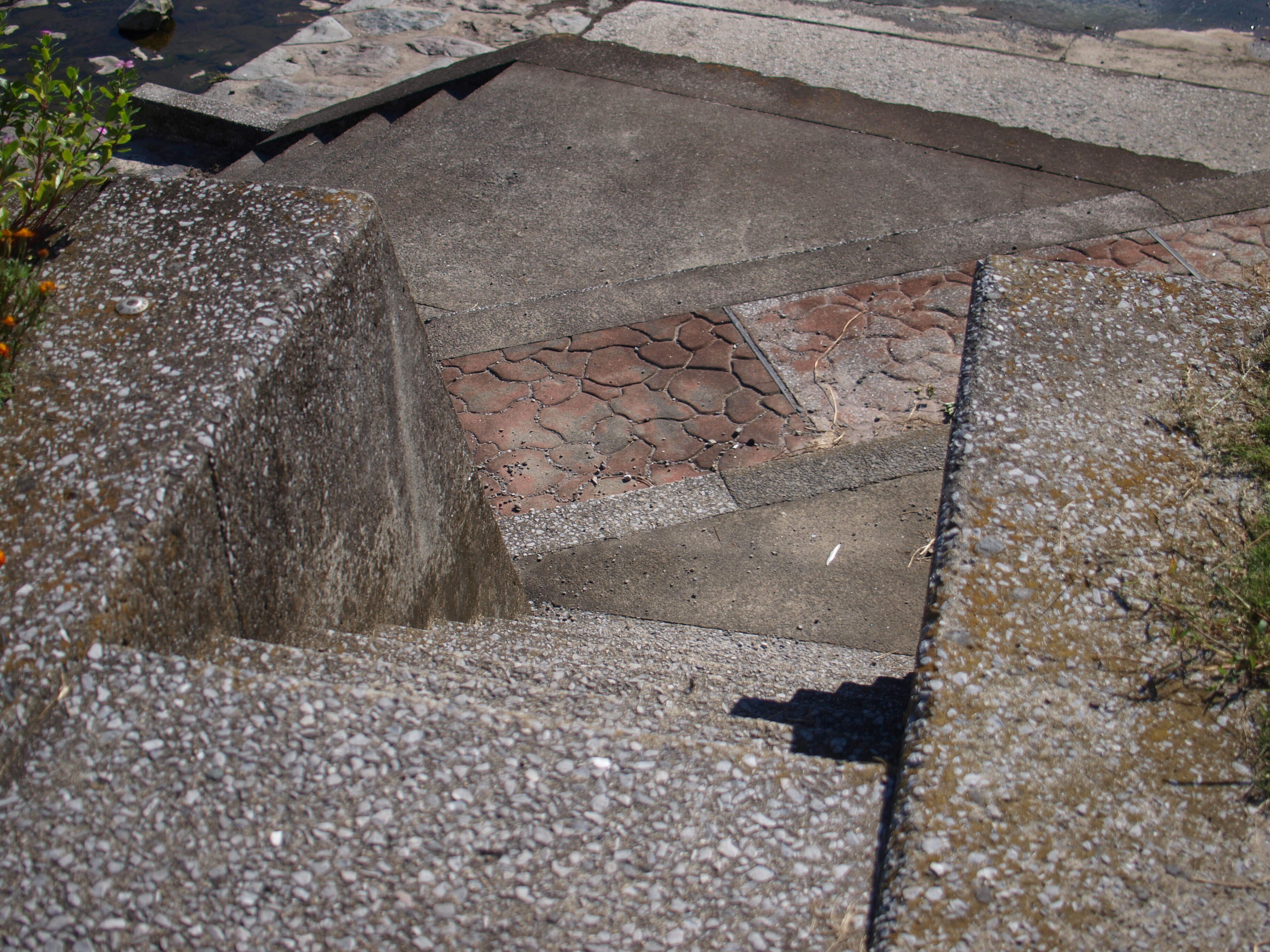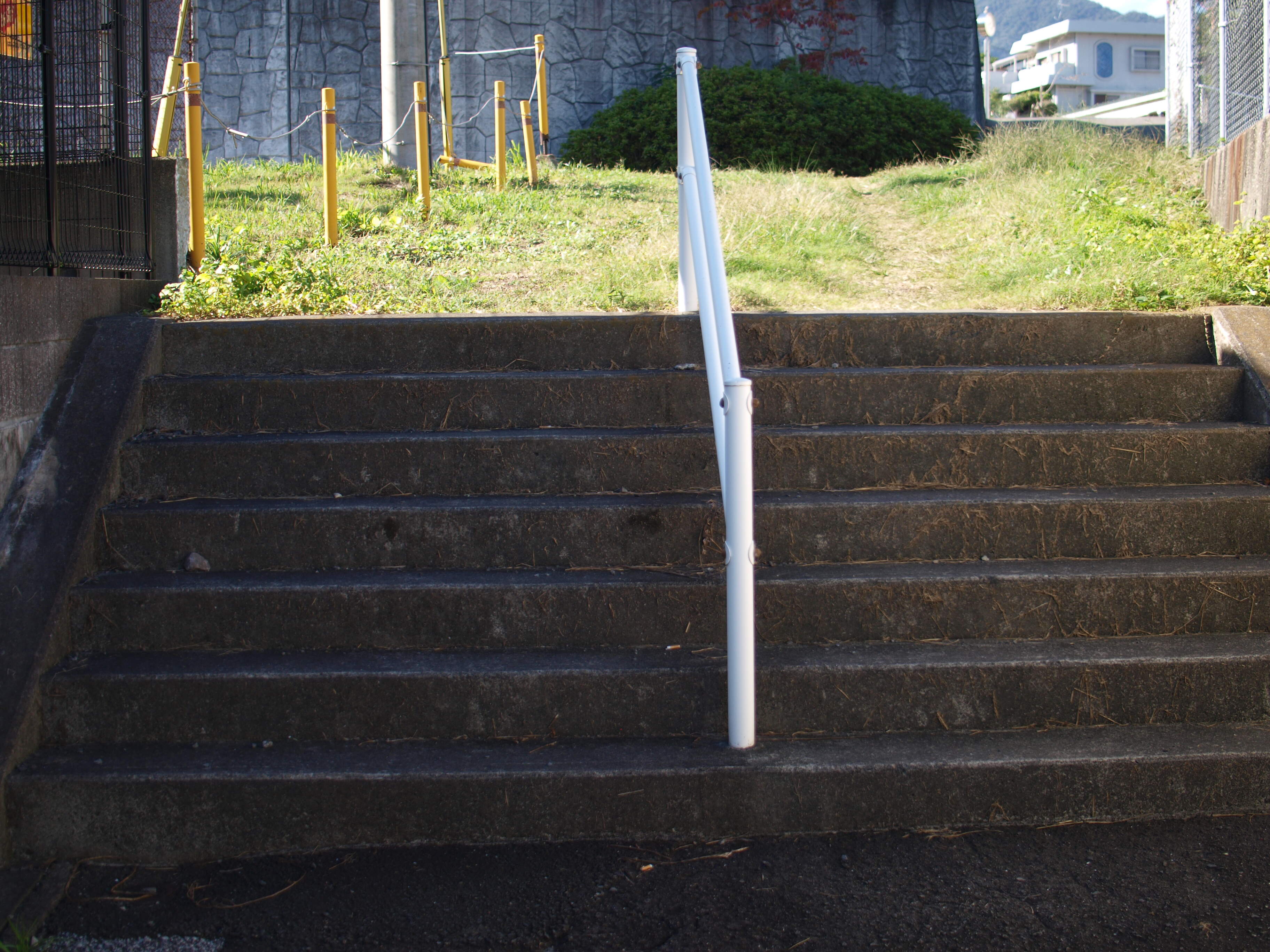 境川(別府市) 階段で土手上の草地へ画像を拡大する