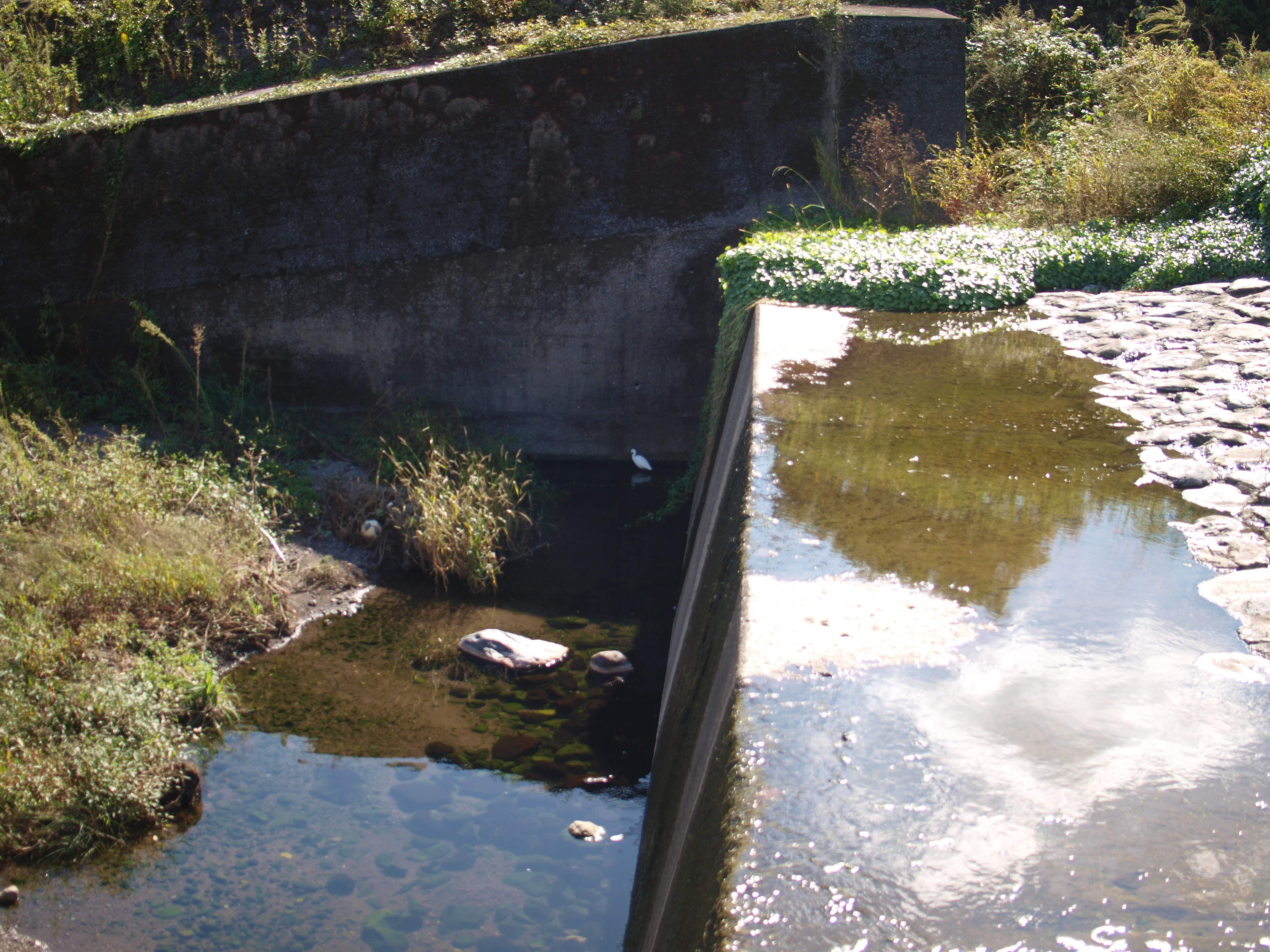河川敷へ下ってすぐのこと、砂防ダムを見るとコサギが獲物を探しているのが見えます。 昨日は2羽一緒でしたが今日は単独です。