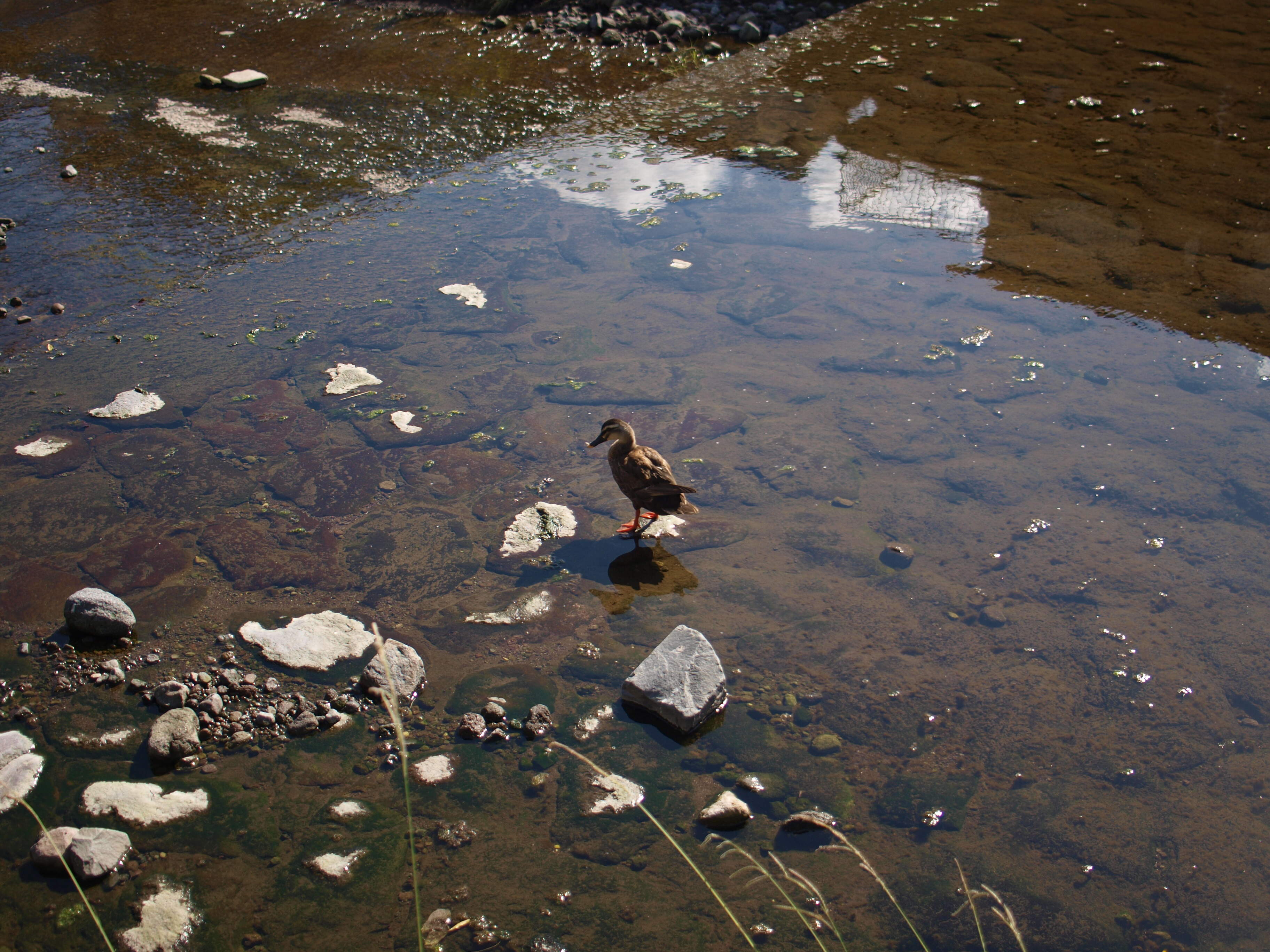 次の砂防ダムではカルガモと出会いました。 つがいではなく単独ですね。