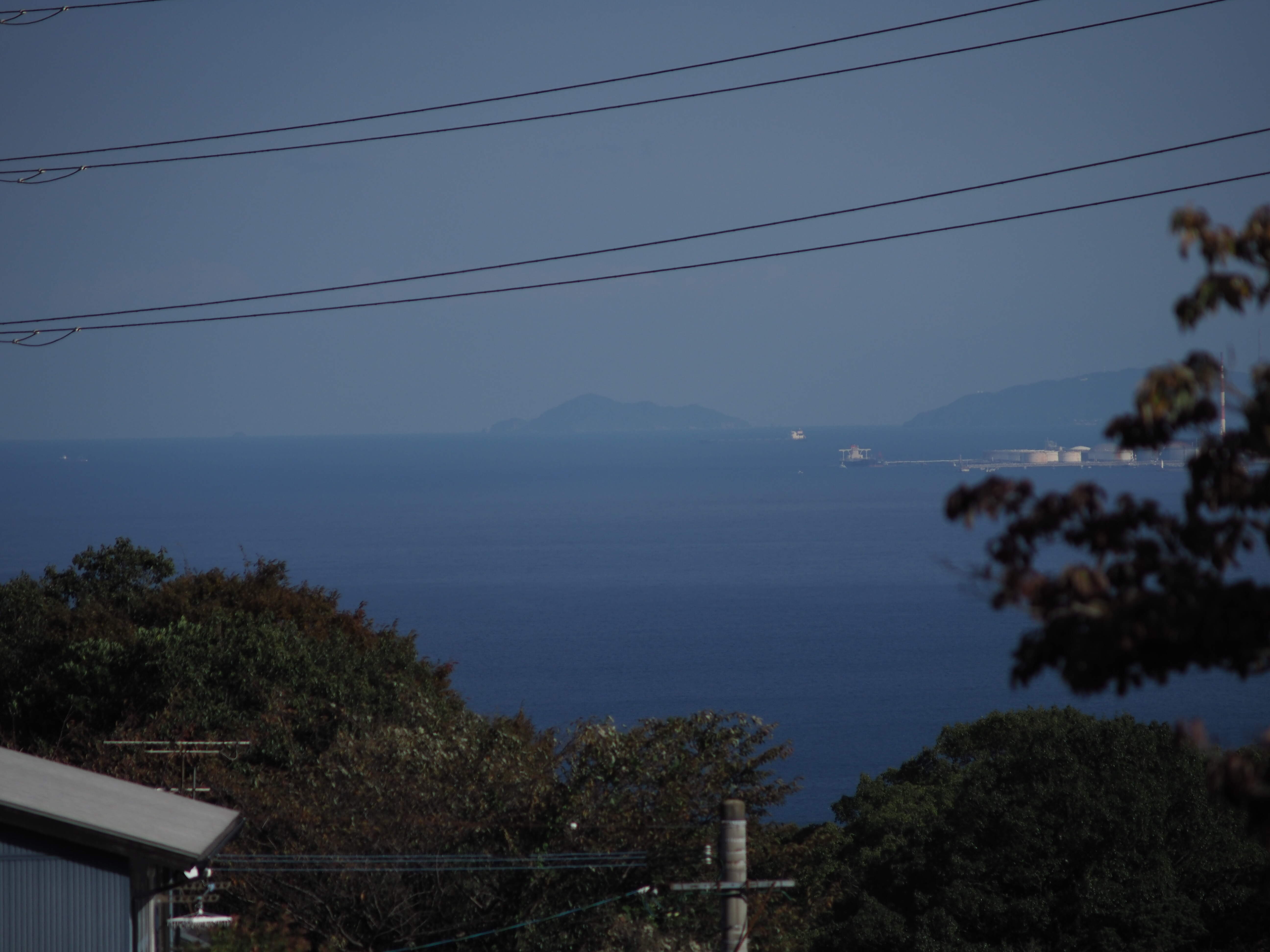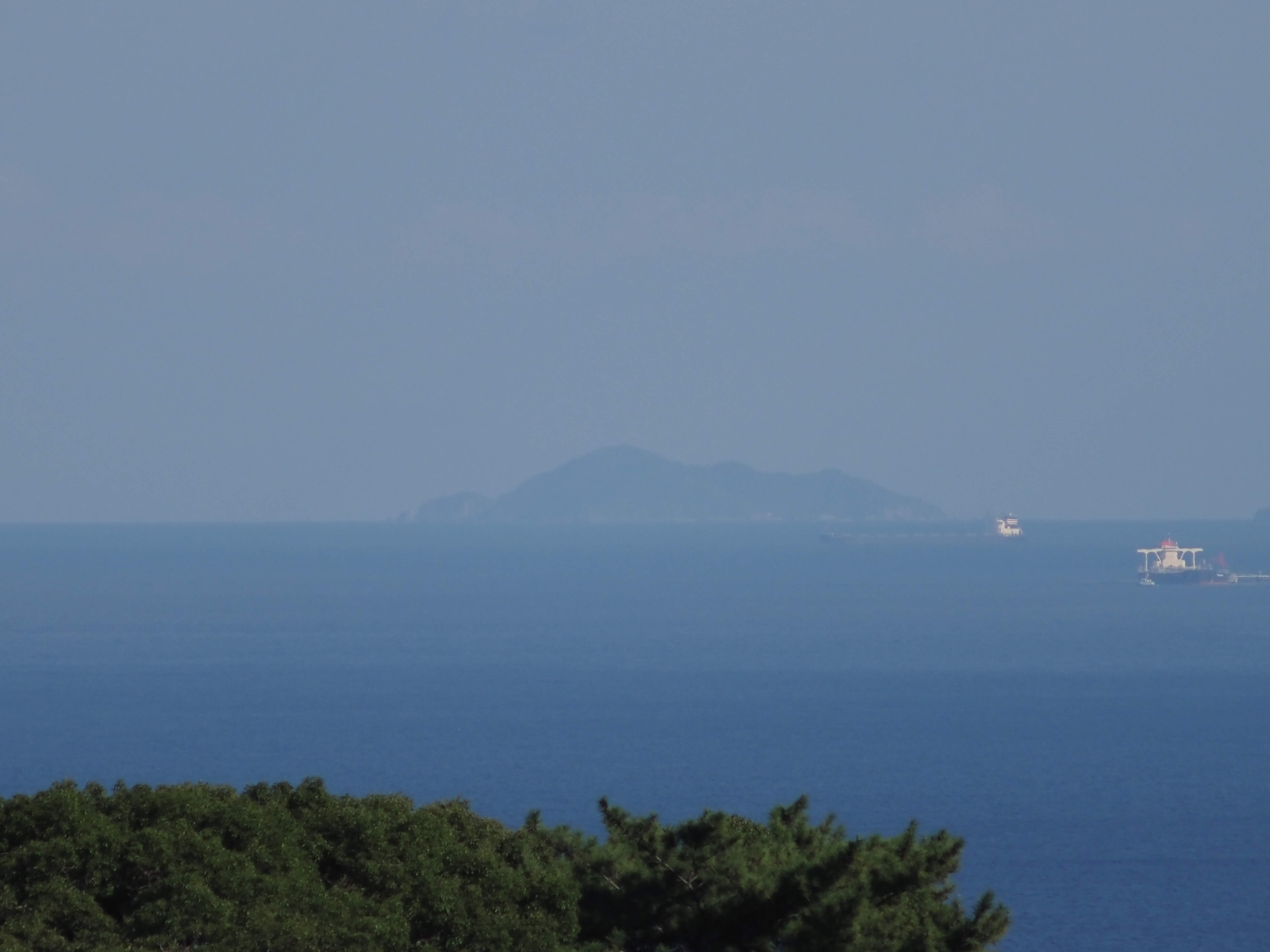 別府湾に目をやると、はるか遠くに高島が見えます。 キャンプ場や海水浴場があるらしいですが、住人はいない無人島だとか。