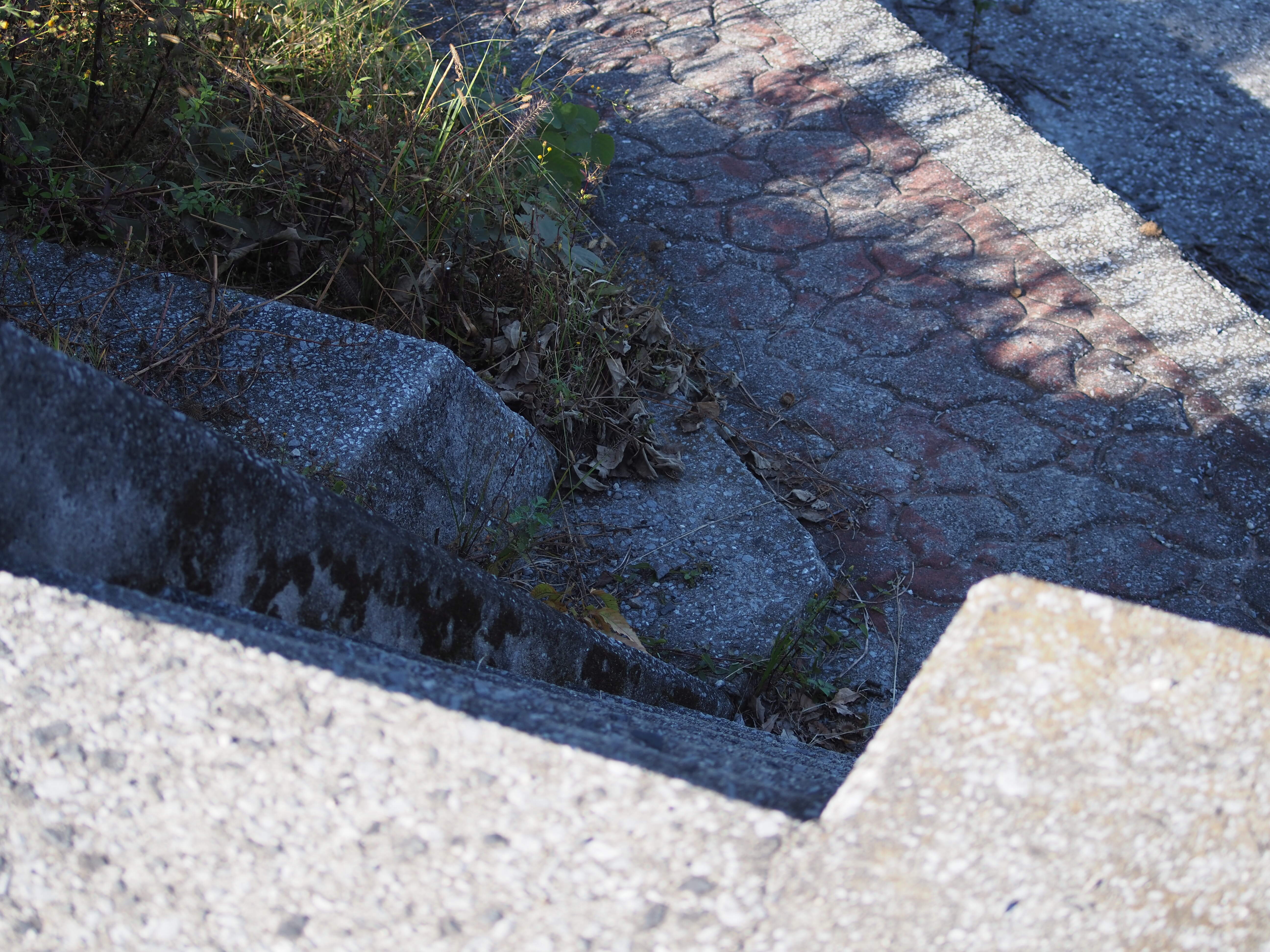 境川(別府市) 階段で道路へ上がってコスモス荘園店へ画像を拡大する