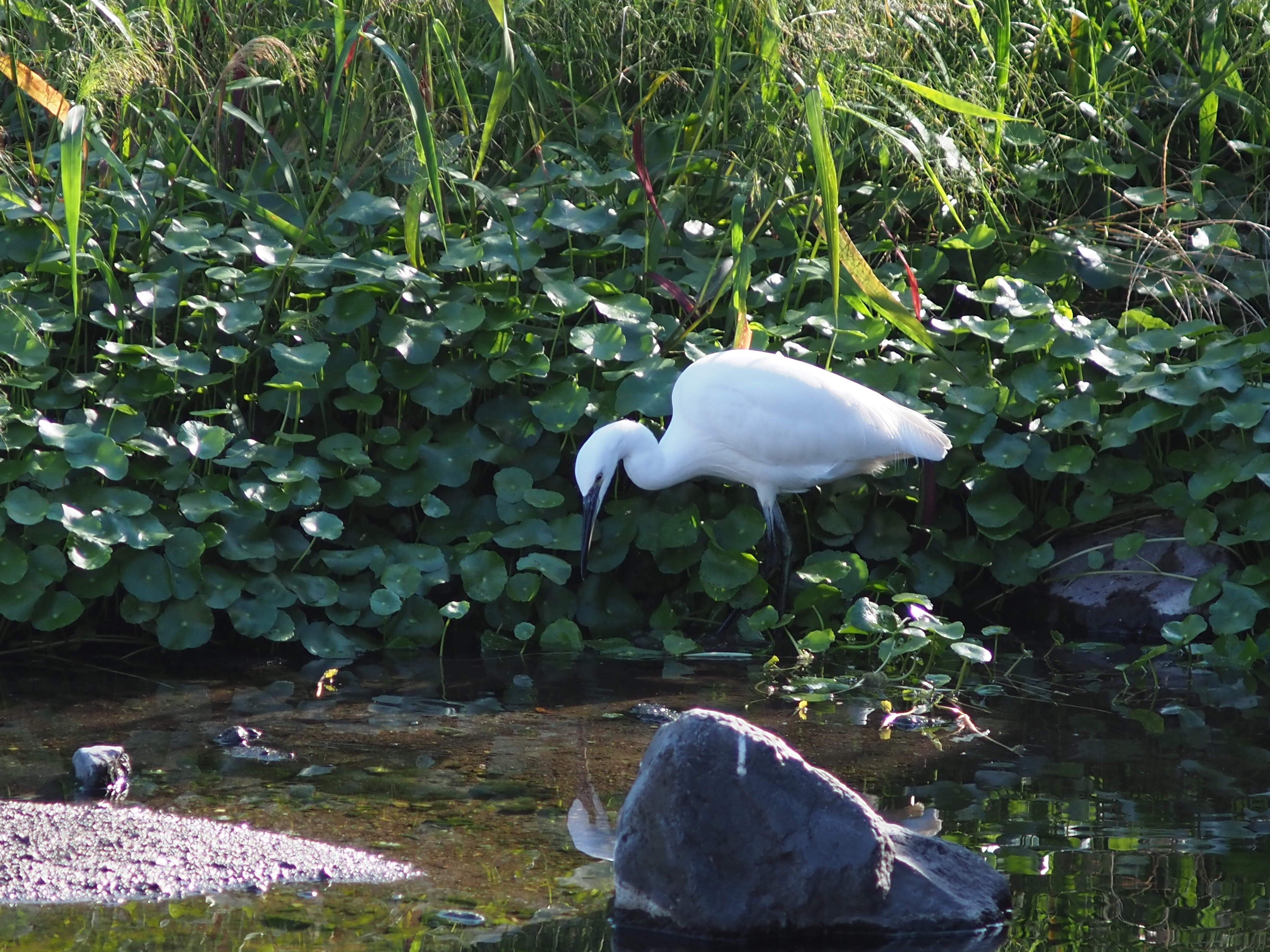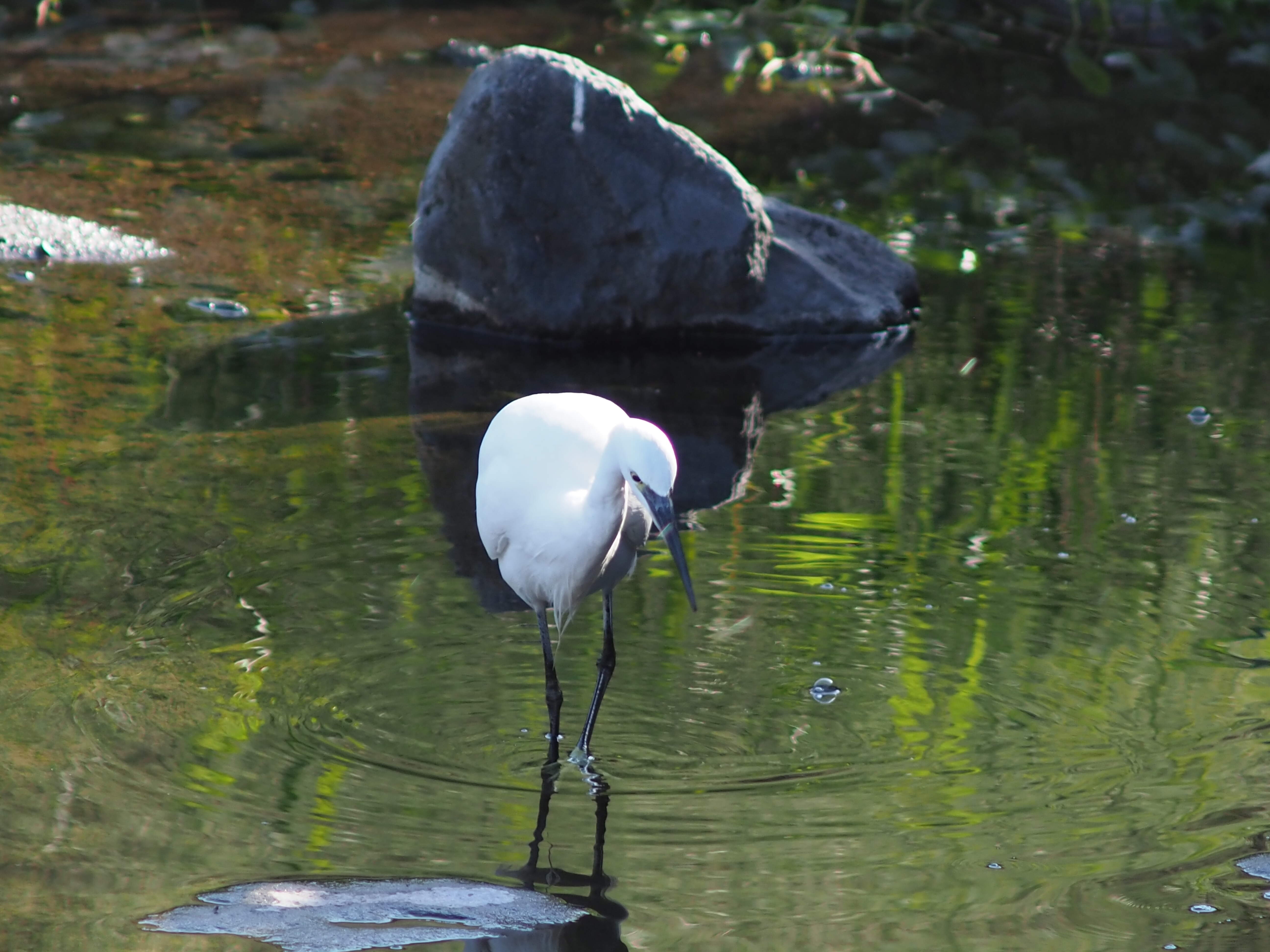 境川(別府市) 何かを飲み込んだコサギ画像を拡大する