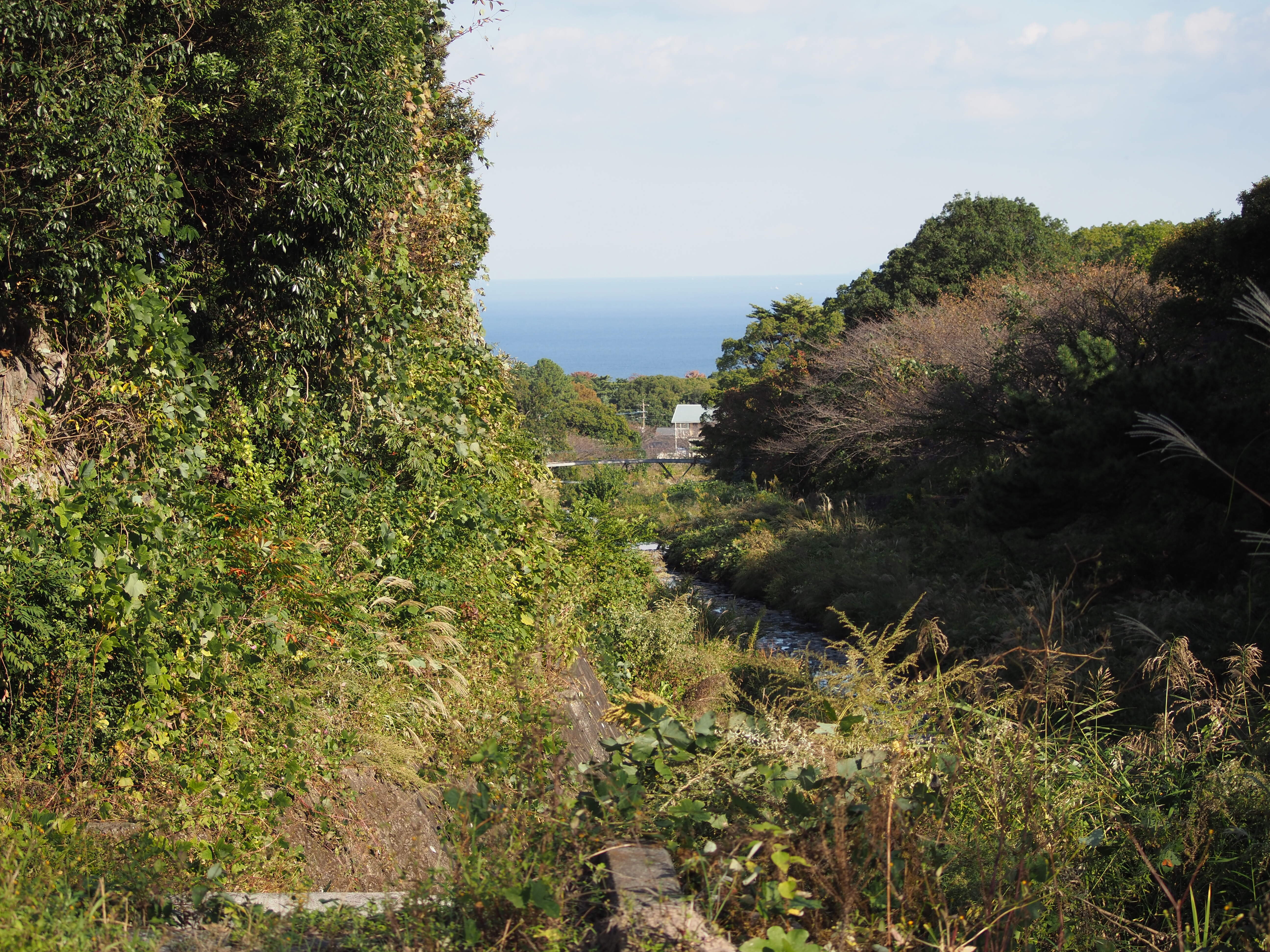 南立石公園町(別府市) 西別府橋の脇から土手上の未舗装路を下る画像を拡大する
