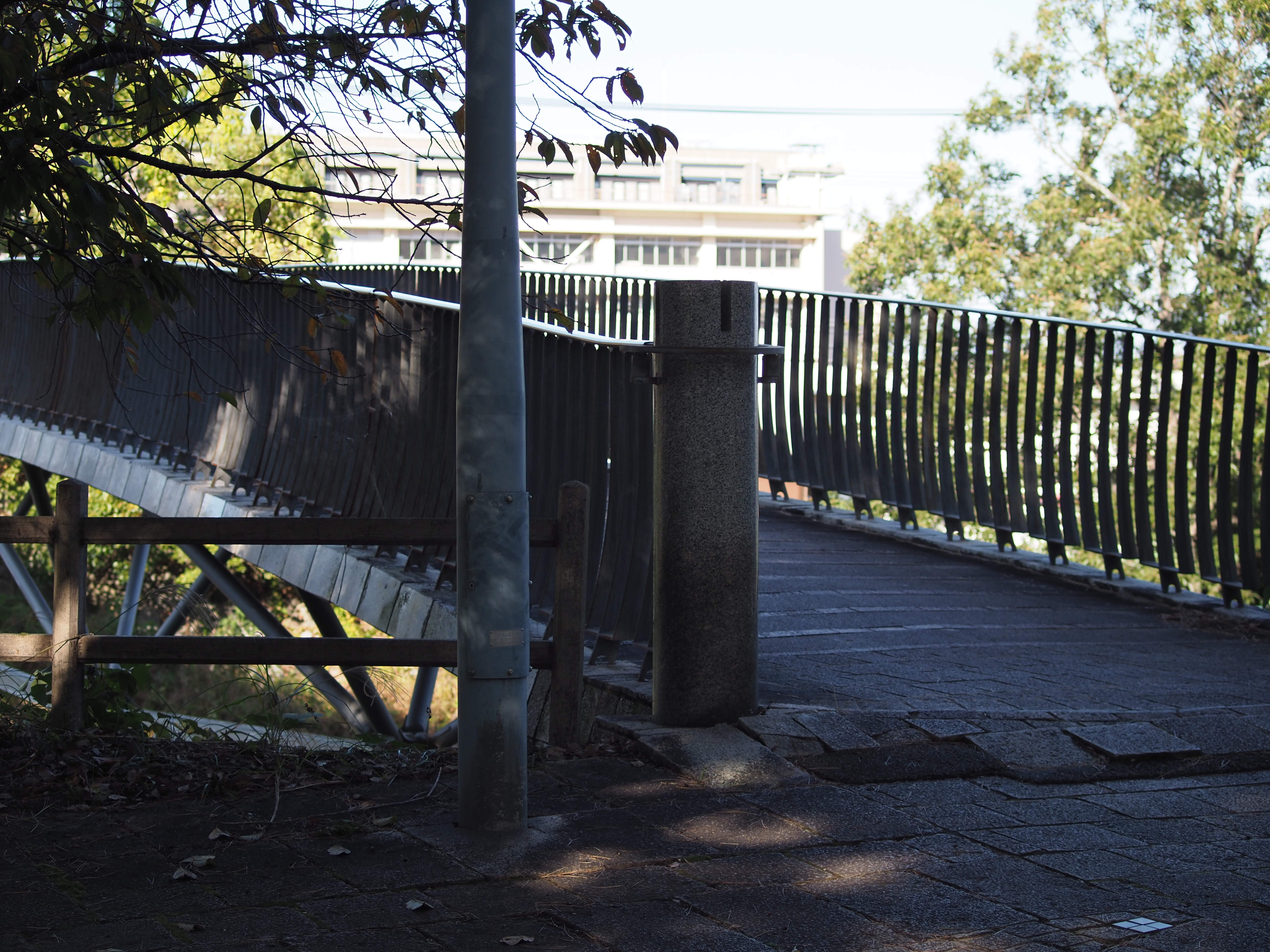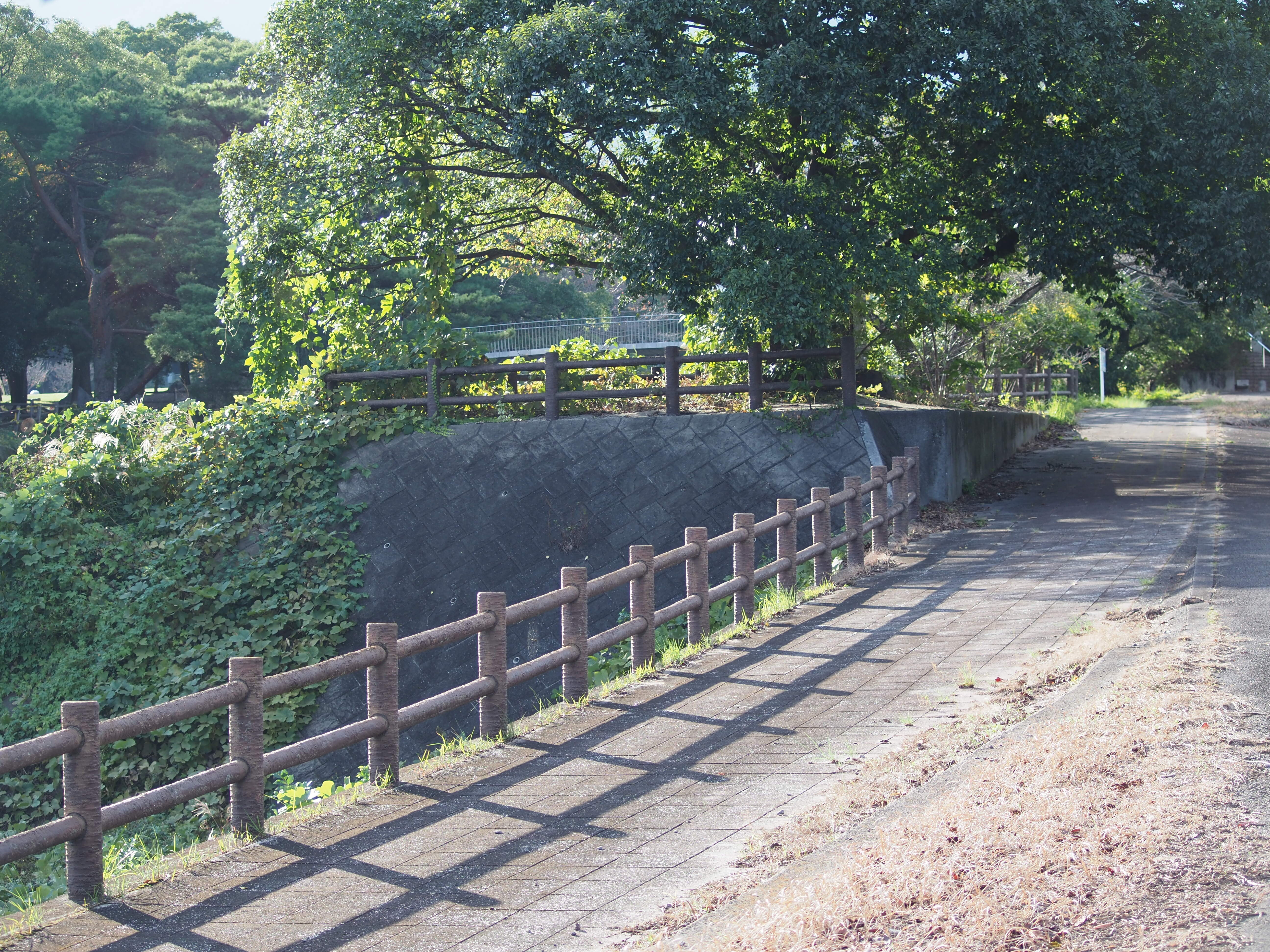 階段で土手上に上がり、遊歩道で南立石公園へ向かいます。 この遊歩道にはキンモクセイが多く植えられているため、微かに良い香りが漂ってきます。