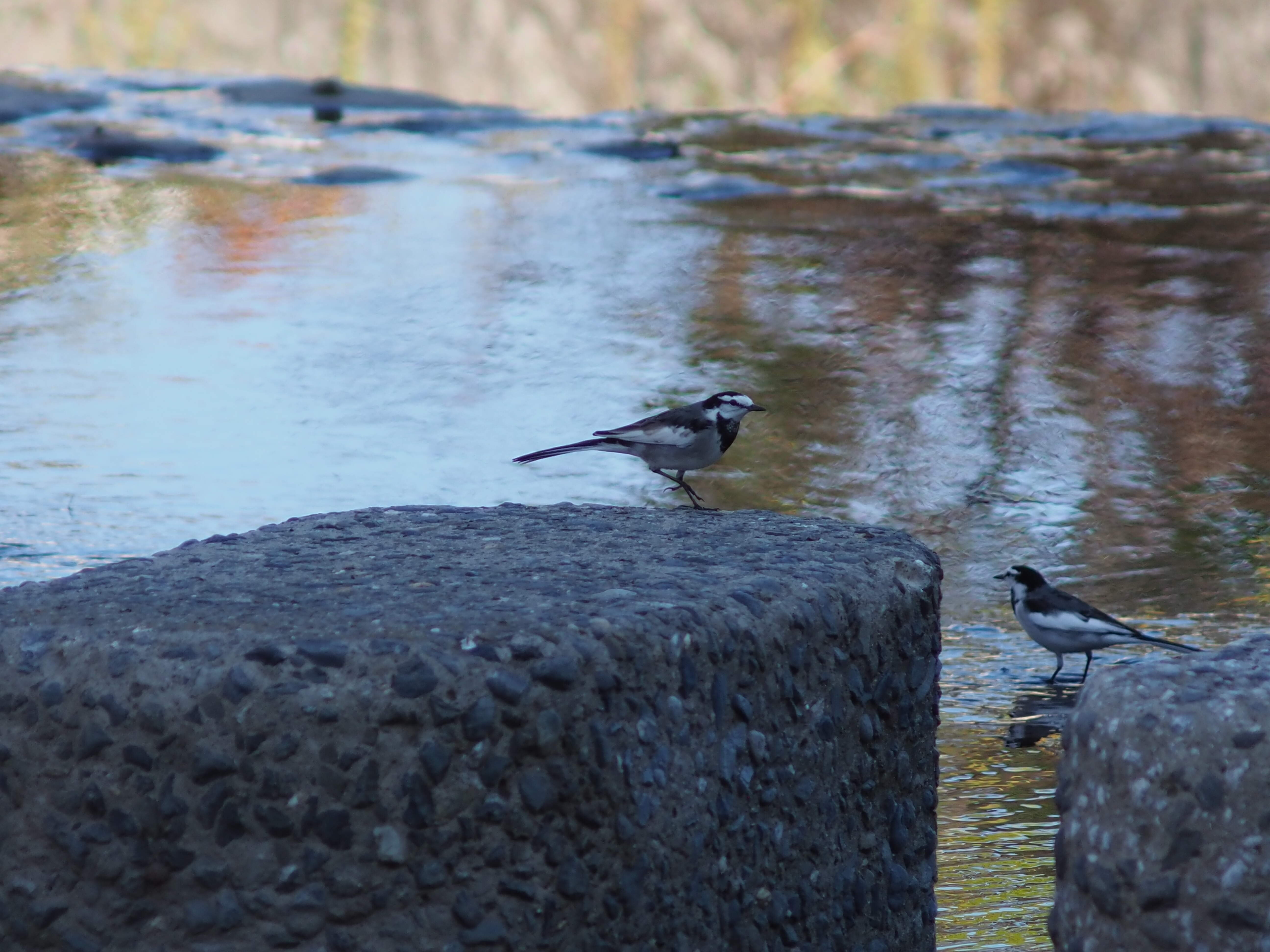 古戦場橋のすぐ下流で数羽のハクセキレイと出会いました。 最近はハクセキレイをたくさん見かけます。