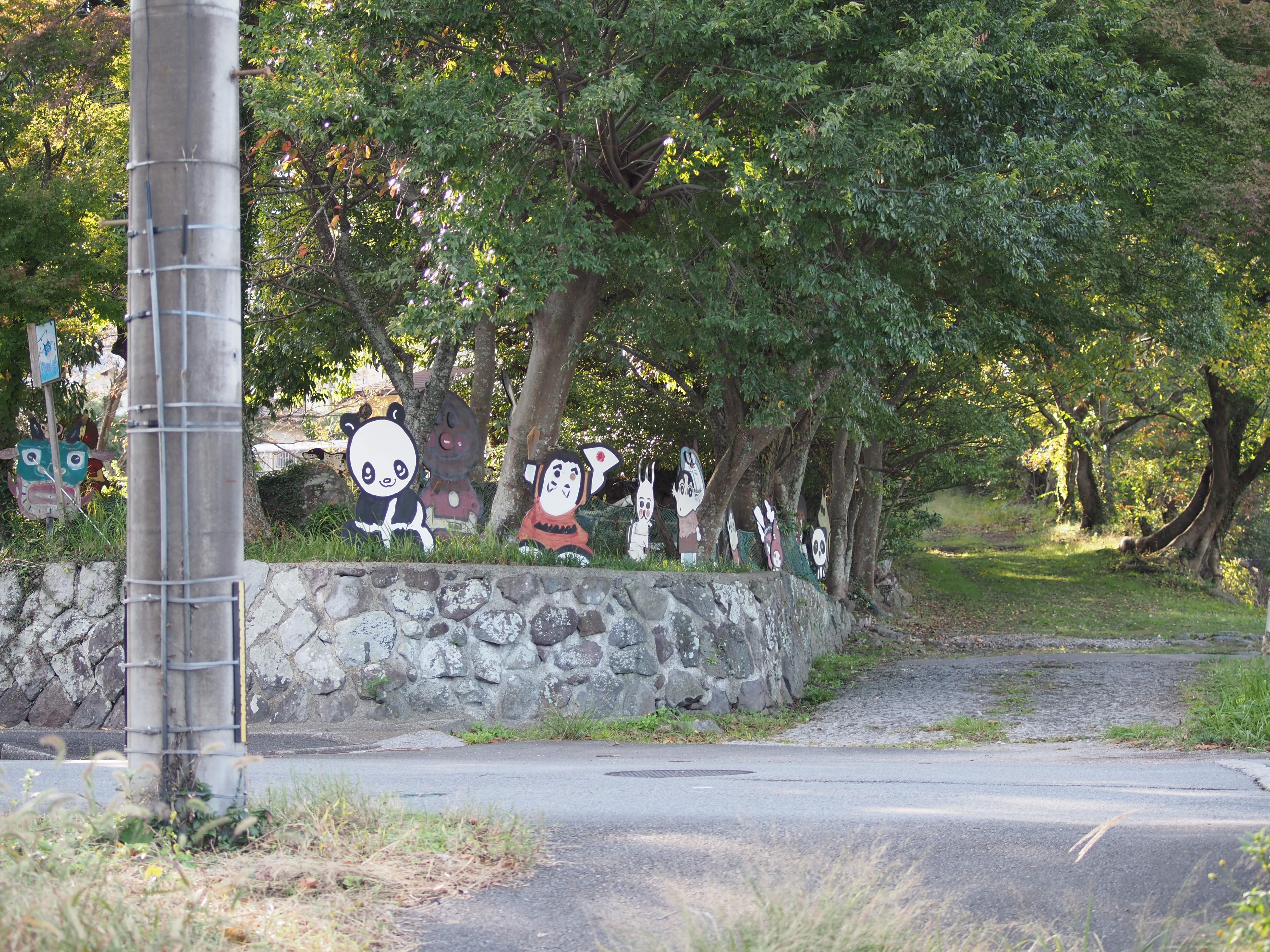 西別府橋の横では仲好し公園の手作り看板が出迎えてくれます。 正体不明のキャラもいますけど。
