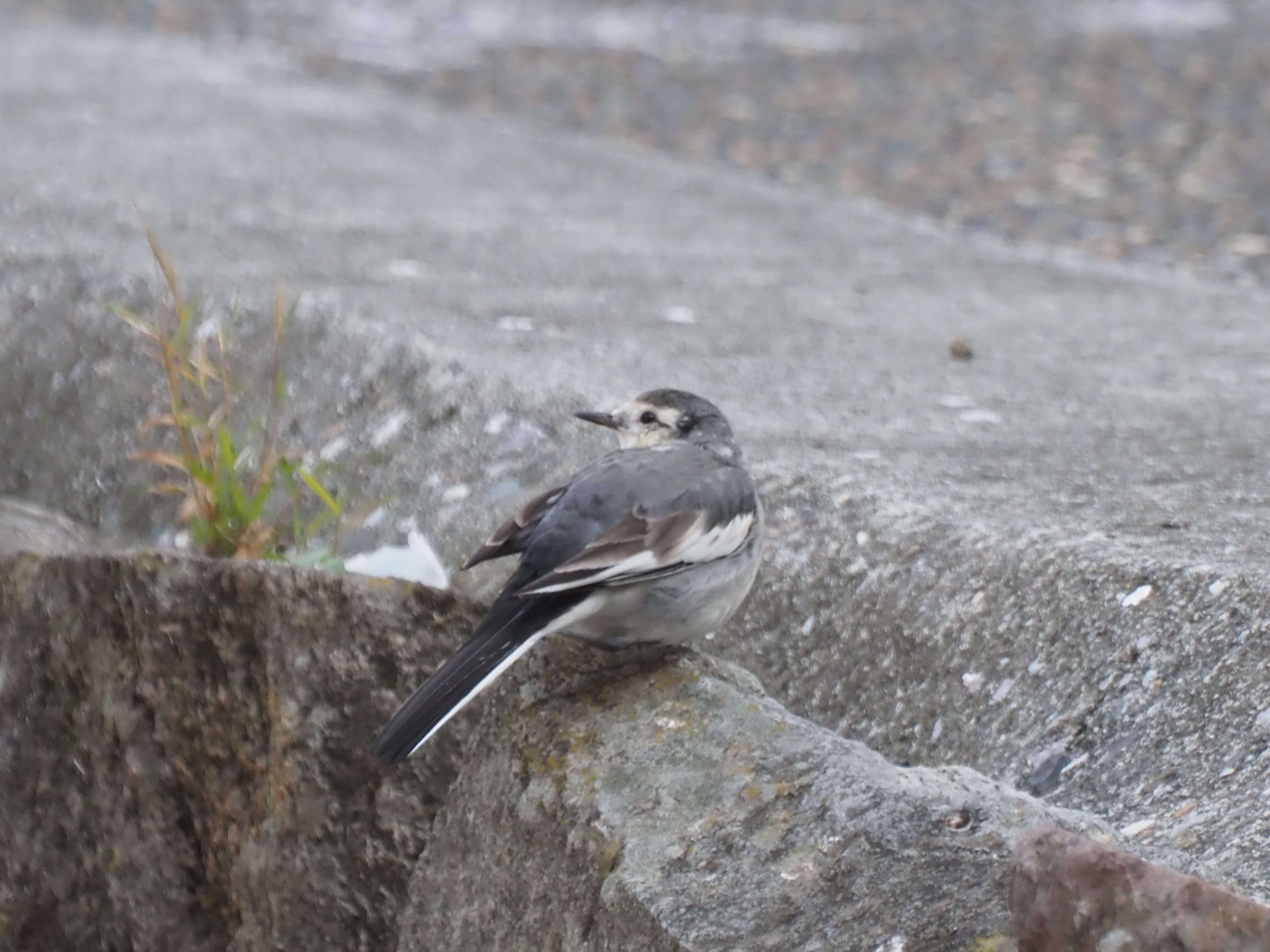 天満小橋(板地川の最下流の橋)の近くではハクセキレイと出会いました。 若鳥っぽいですね。