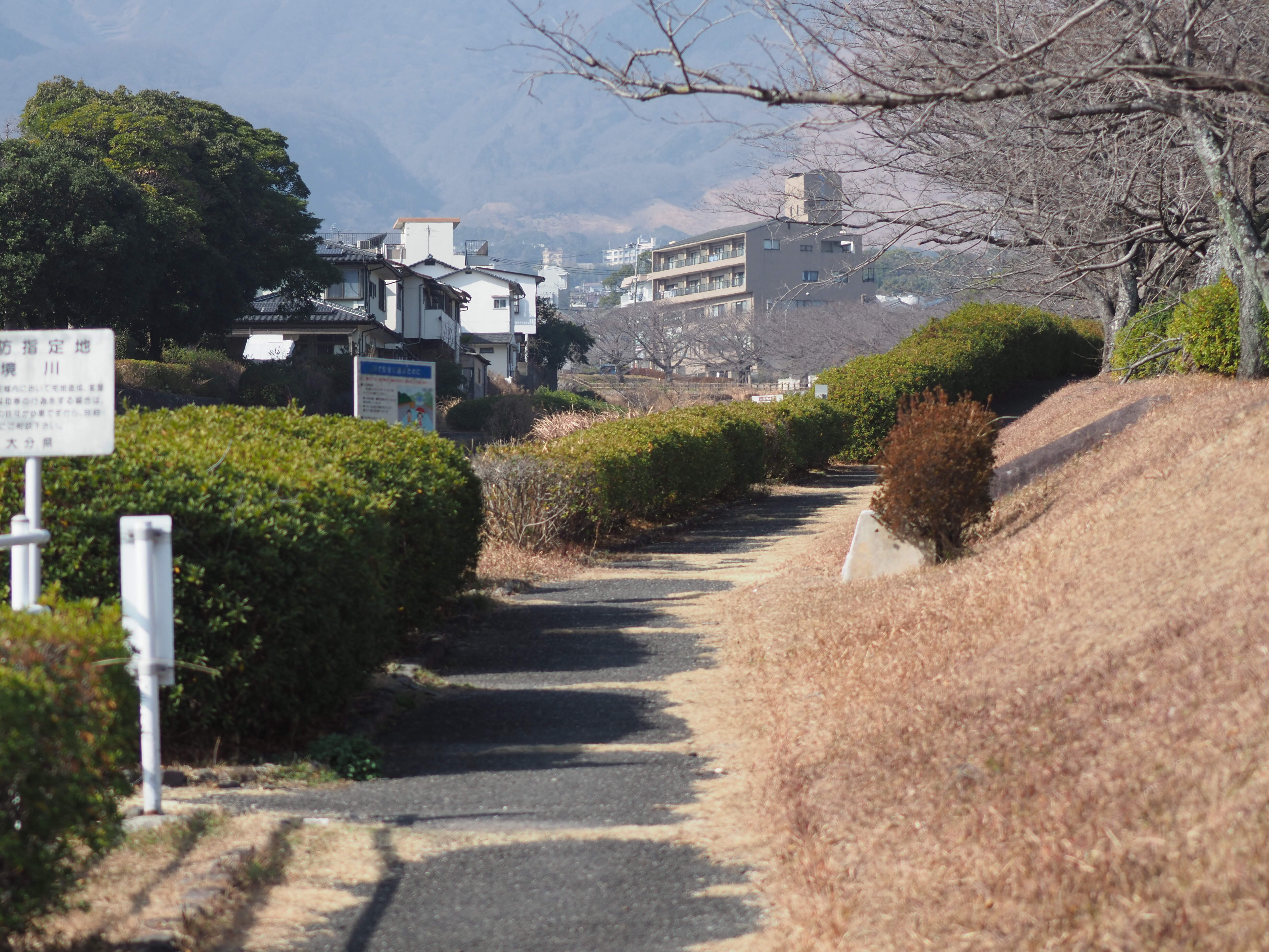 境川(別府市) 境川の土手上の遊歩道を上流へ