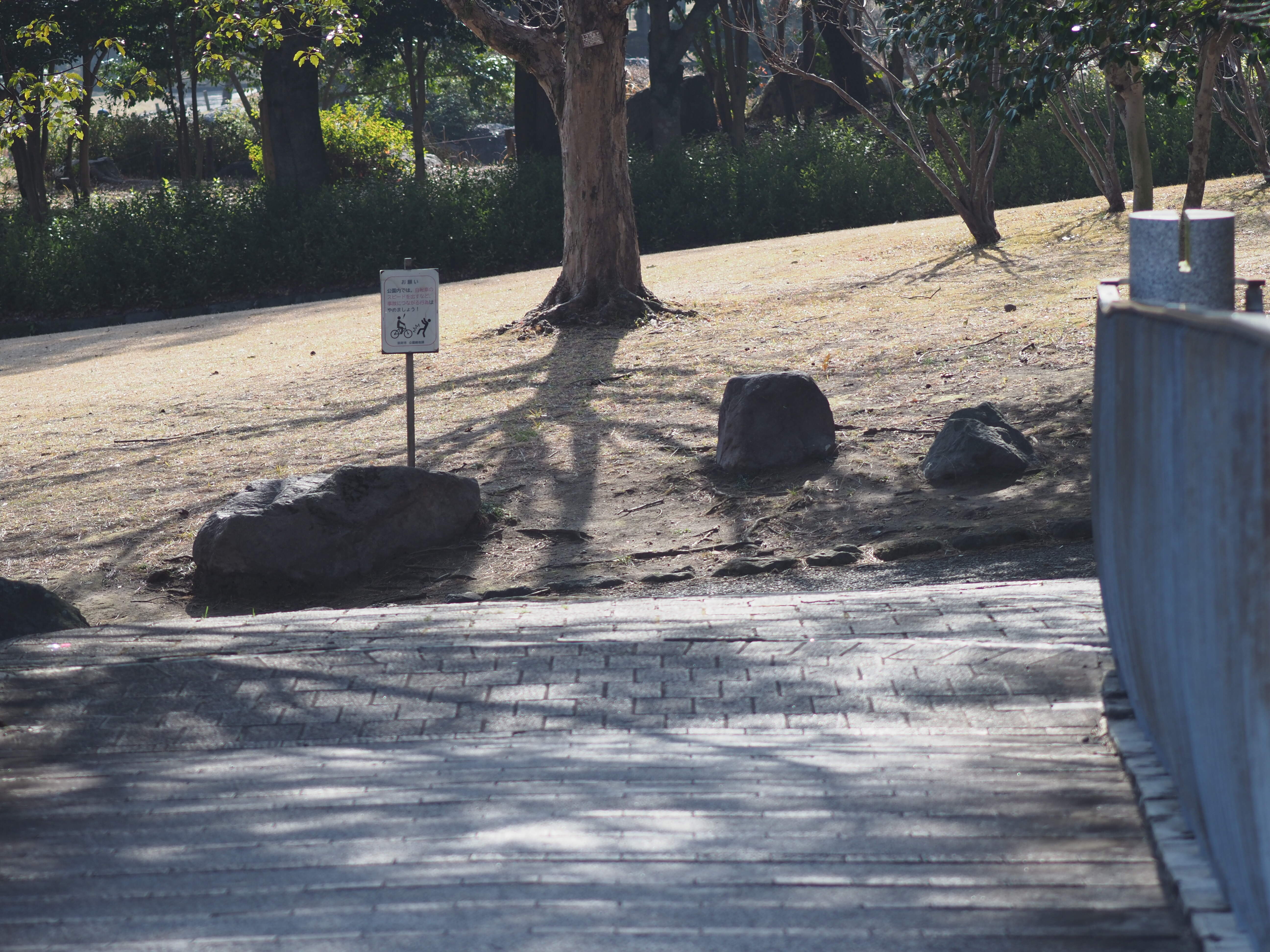 信号機で鉄輪線を越え、その先のイナコスの橋で南立石公園へ入ります。