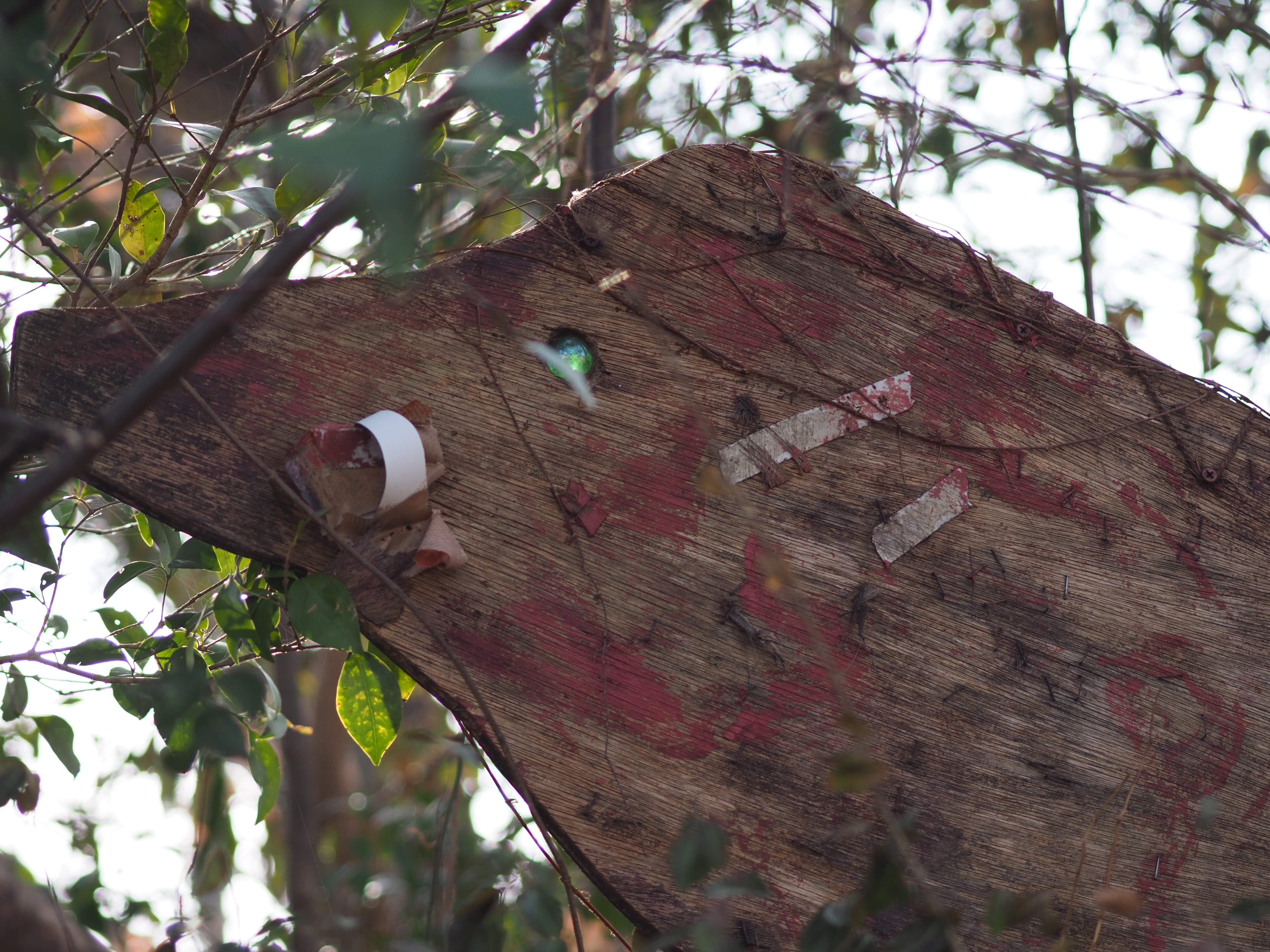 西別府橋を越えて進むと、仲好し公園のイノシシの看板が出迎えてくれます。 ビー玉で作られた目玉がカッコイイ乙事主様です。