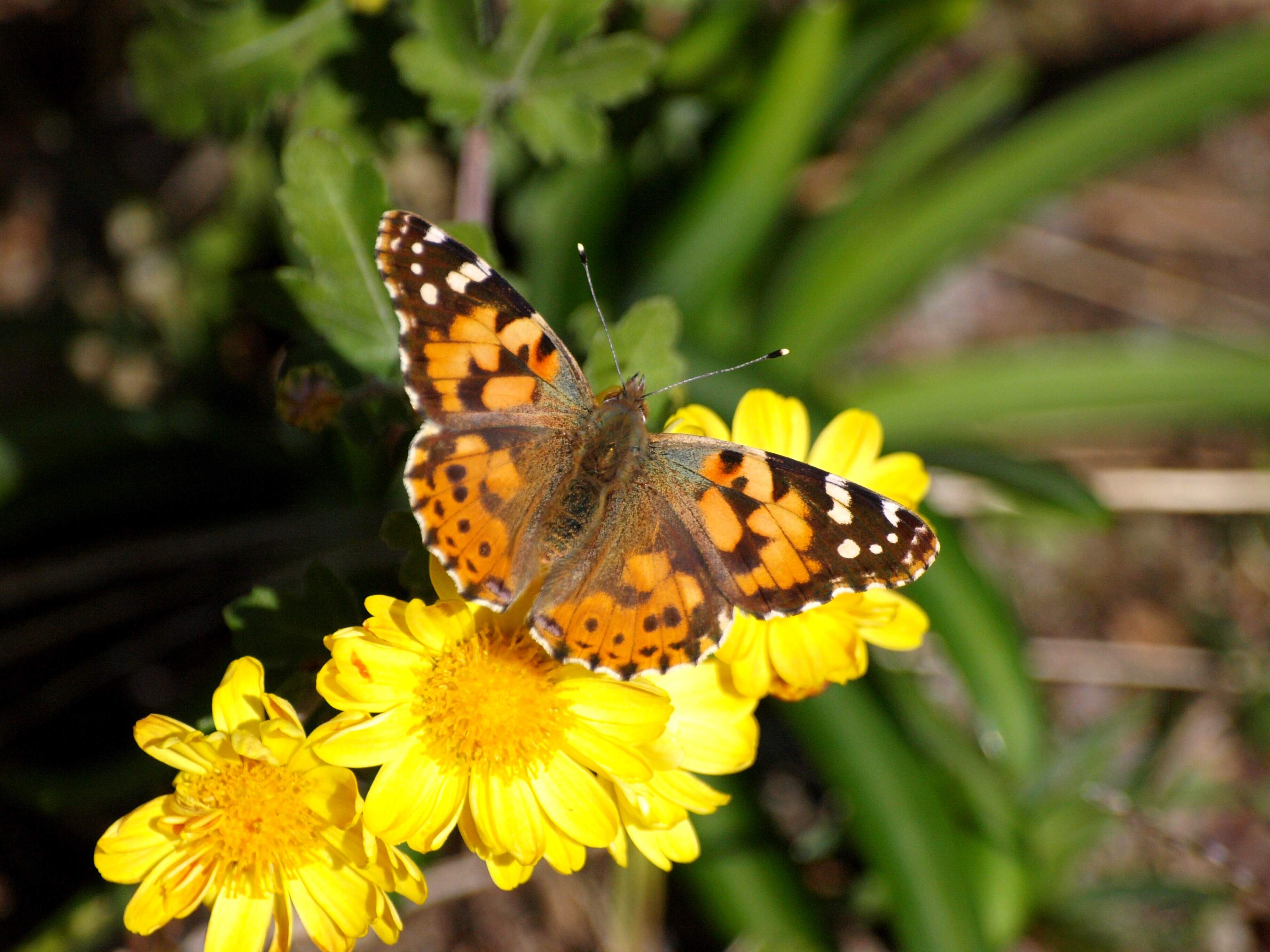 黄色い身近な蝶で、モンキチョウよりも少し小さいです。 なかなか地面や草花に止まってくれないので写真を撮影するのが難しいです。