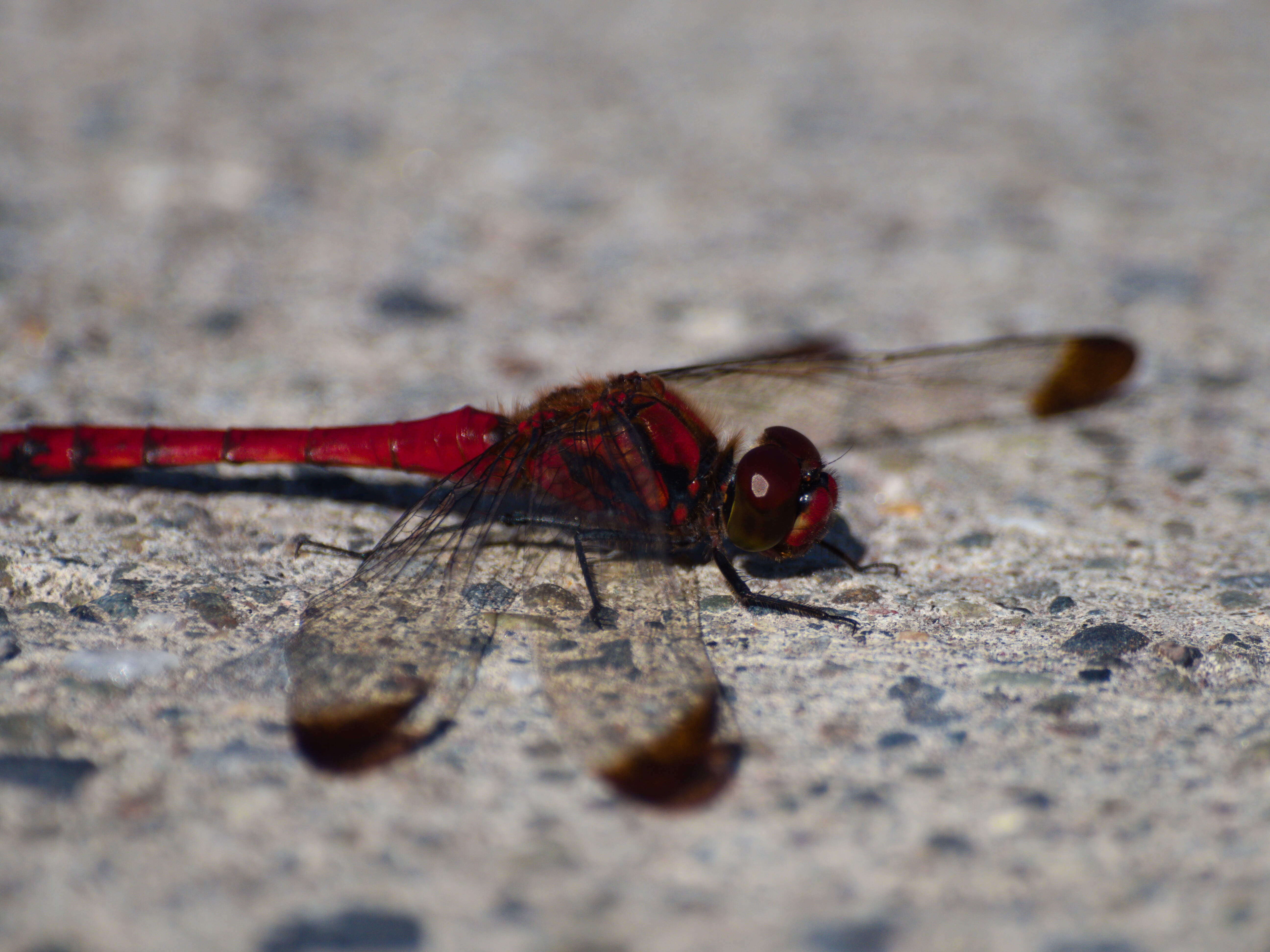 体は赤紫色で翅が赤色のトンボです。 昔は日本には生息していなかったそうですが、温暖化の影響で生息域が北上してきているとか。