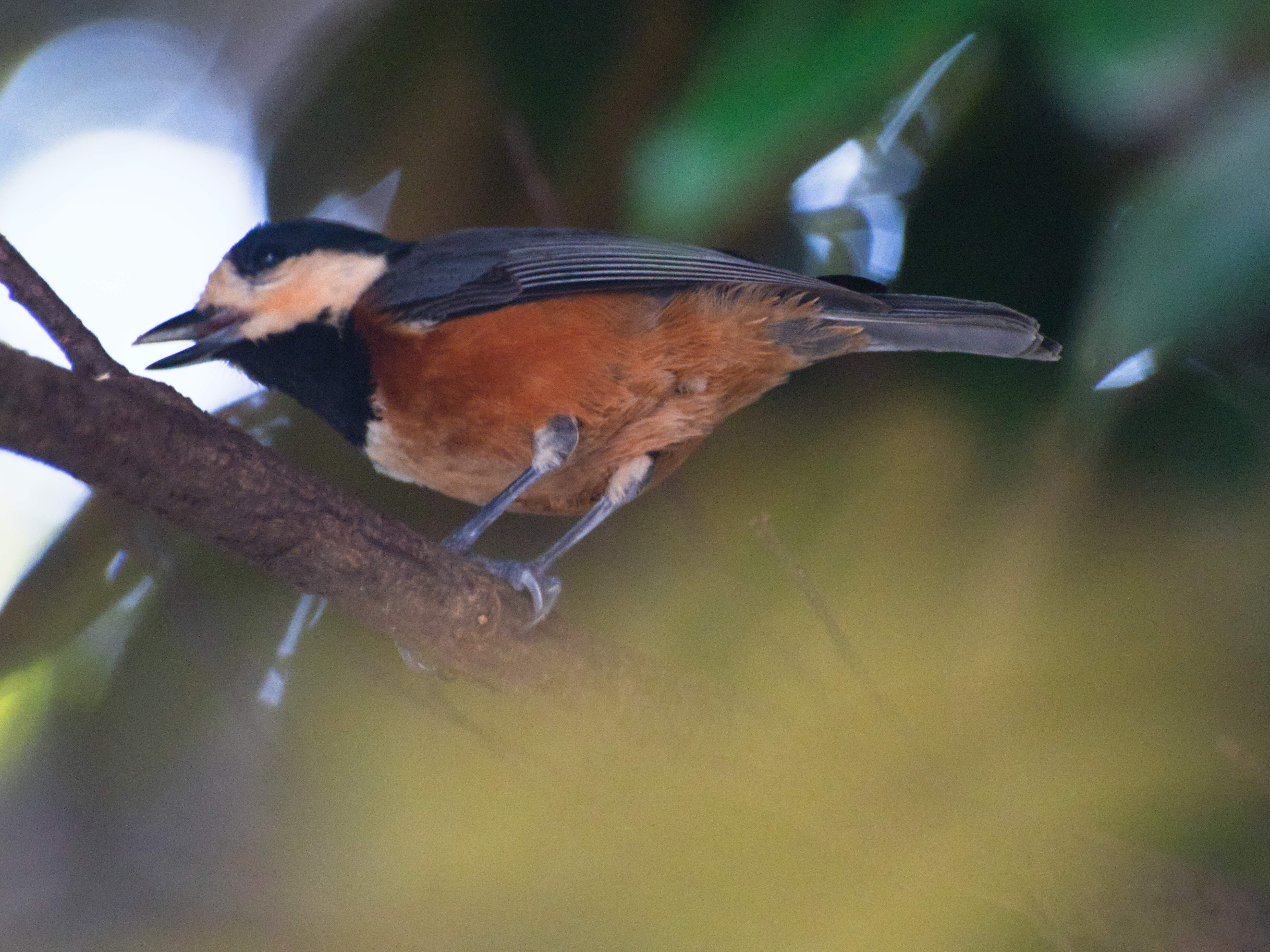 白いほっぺとネクタイ模様が特徴のスズメ大の野鳥です。 繁殖期以外はメジロやエナガなどの他の野鳥と一緒にいることが多いそうです。