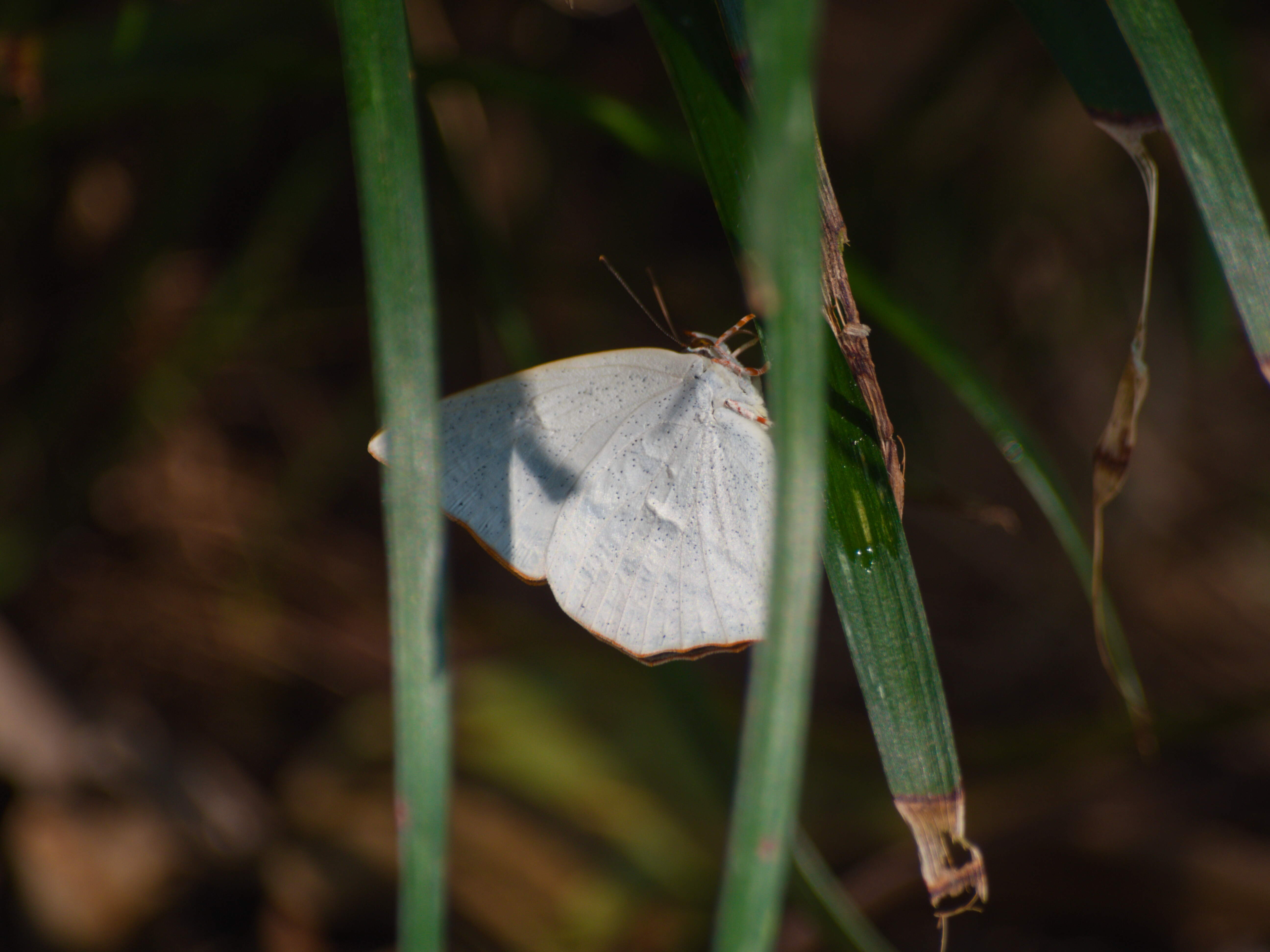 翅の裏が模様のない銀白色なのが特徴のシジミチョウ科の蝶です(点状の模様はあります)。 花にも樹液にも落果にも集まるとか。 春から秋にかけて見られるらしいですが、境川で見かけるのは秋だけのように思います。