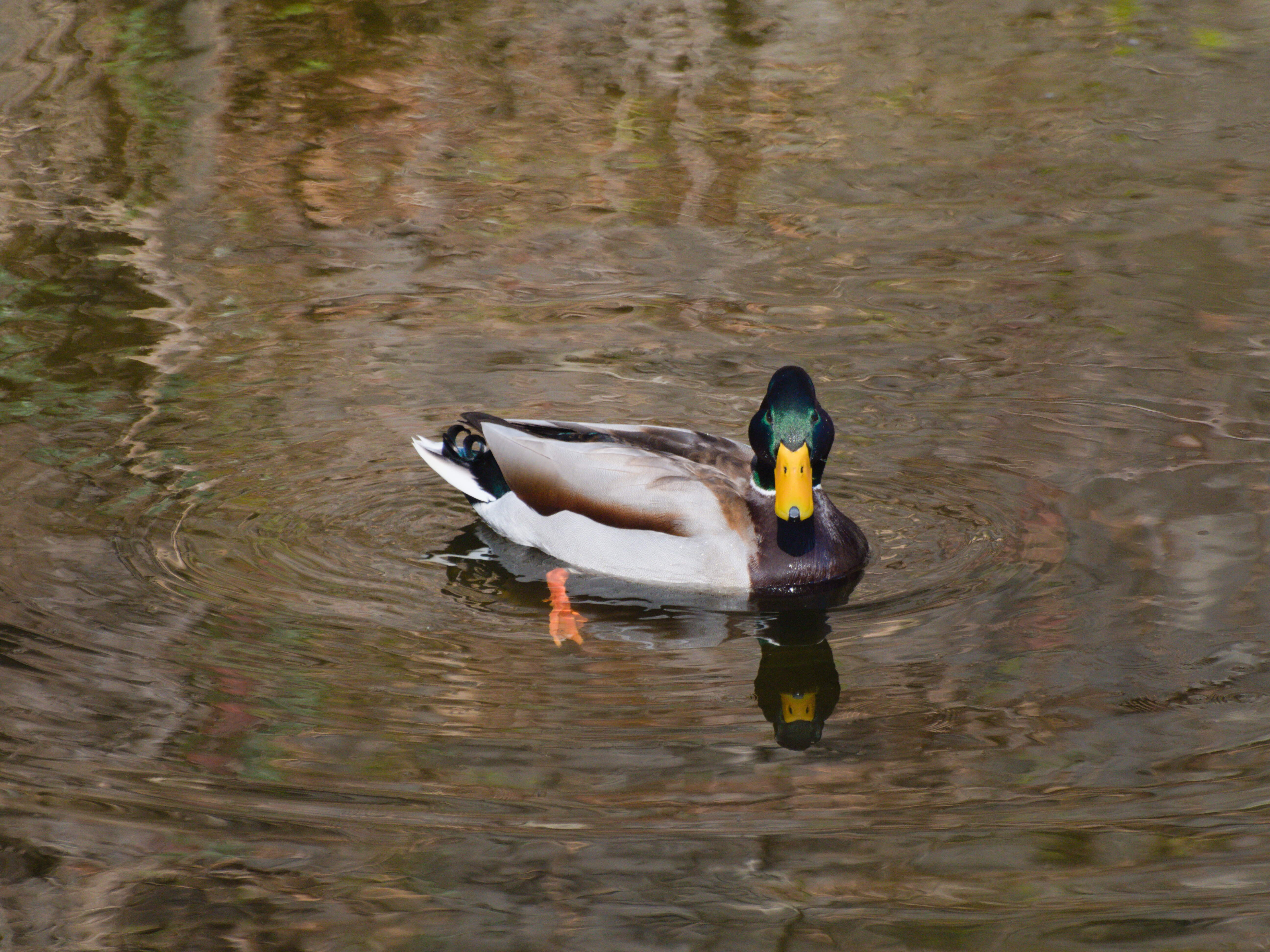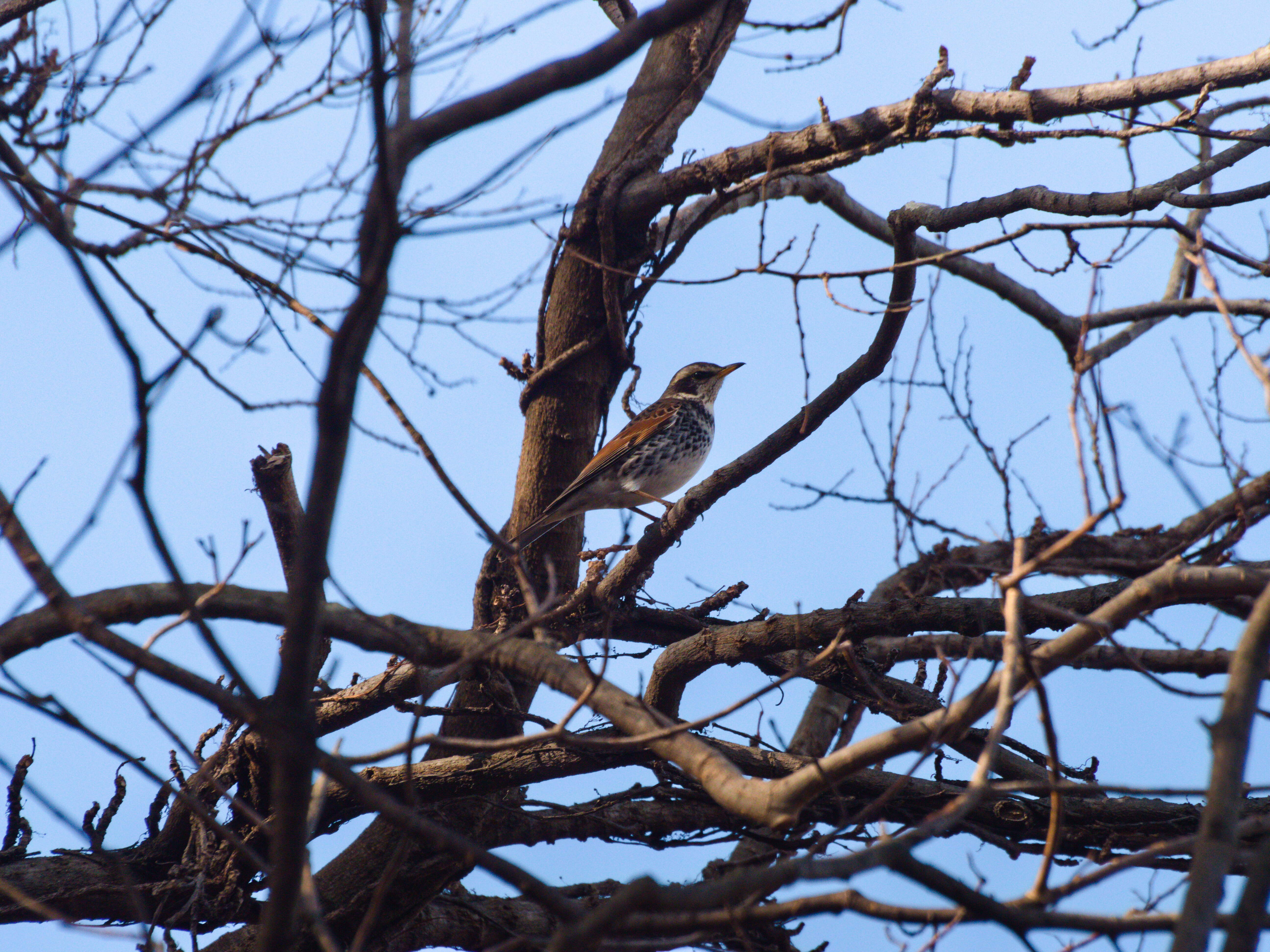 土手上の遊歩道で迂回して下流から近づいたところ、上流へは逃げずに頭上を飛び越えて下流に逃げていきました。