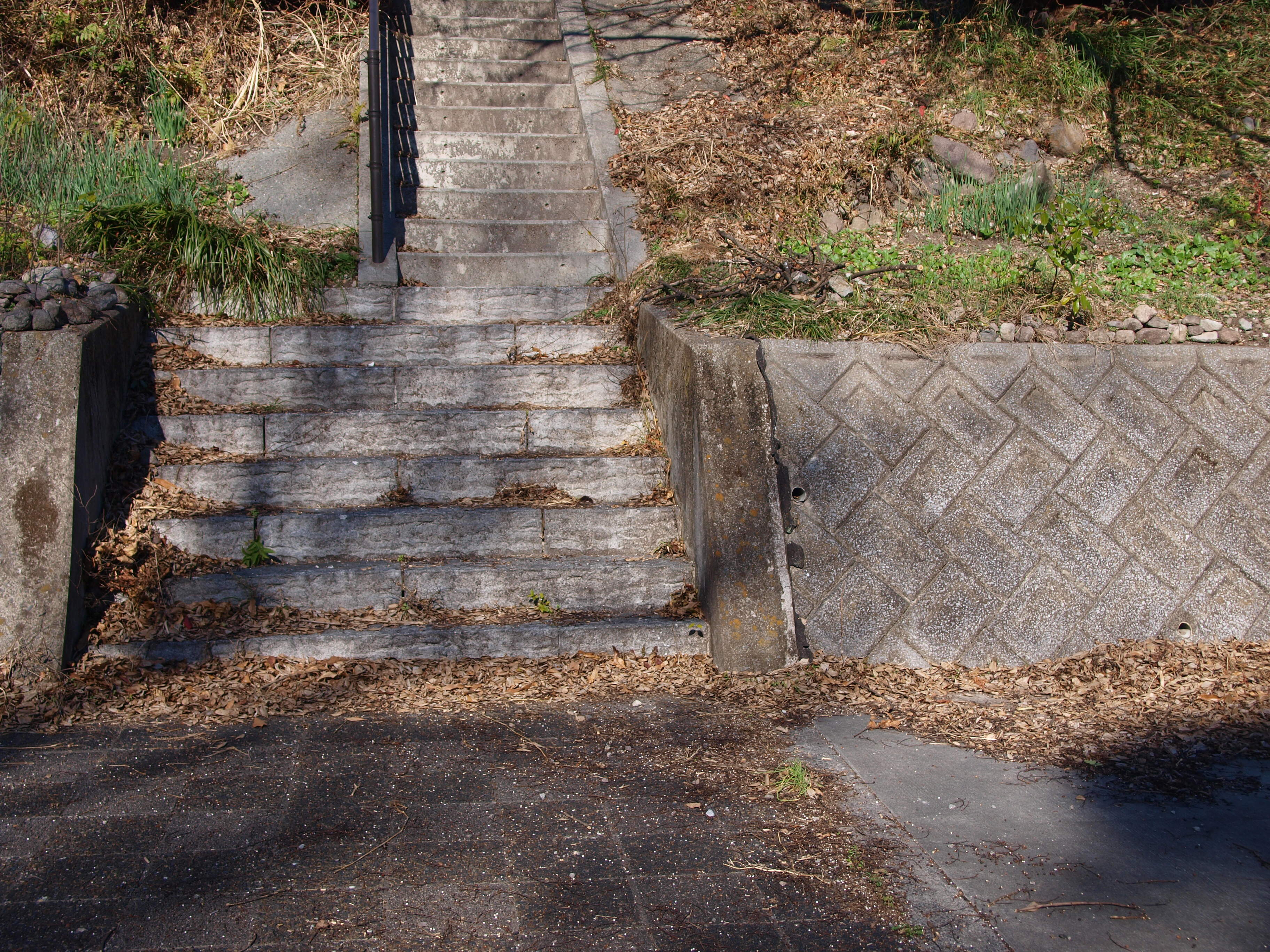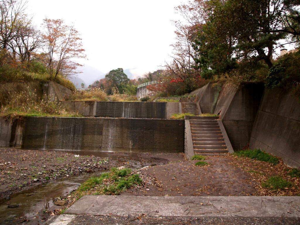 砂防ダムを越えた先にある左岸の土手上への階段も見てみましょう。