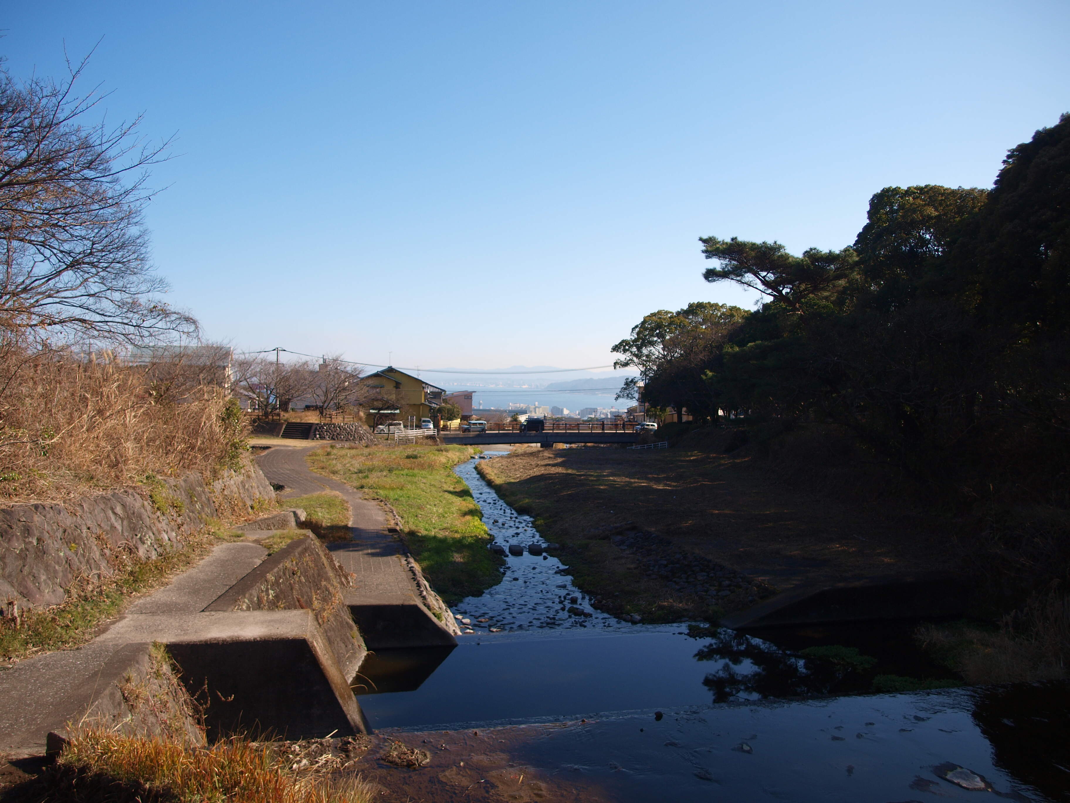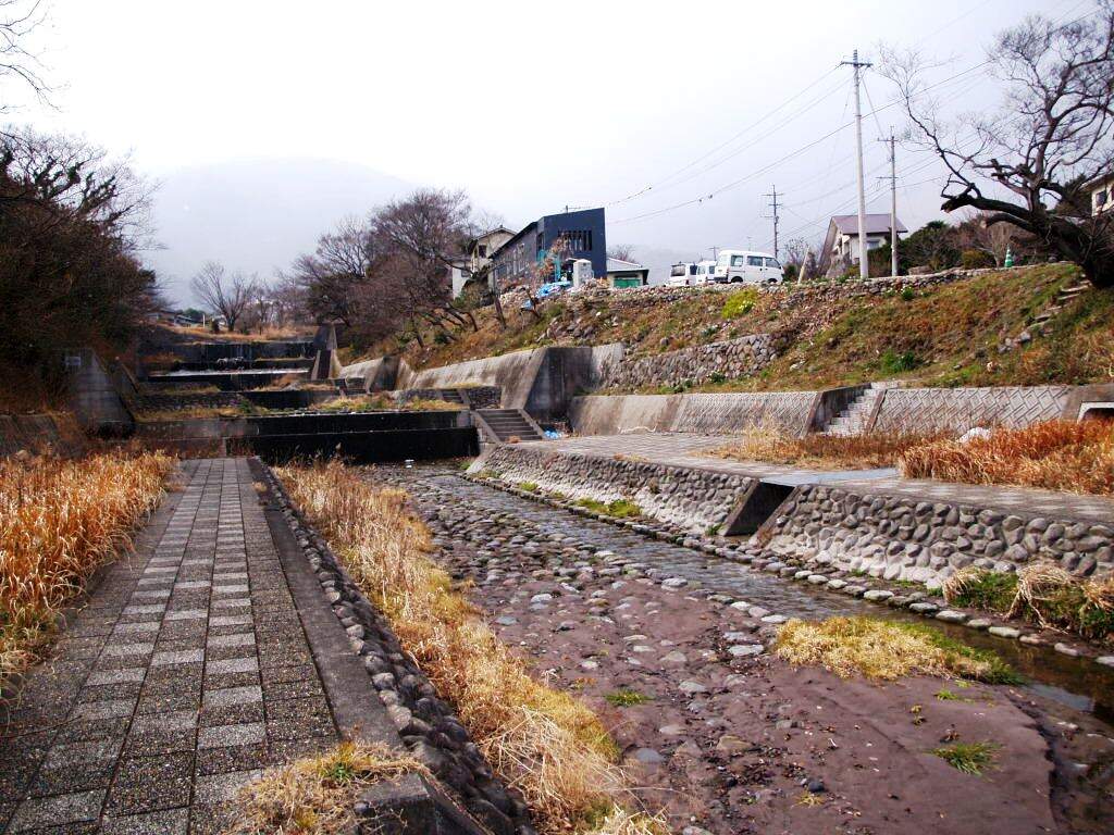 現在は川の半分ほどが土砂で埋まり、草が生い茂っています。